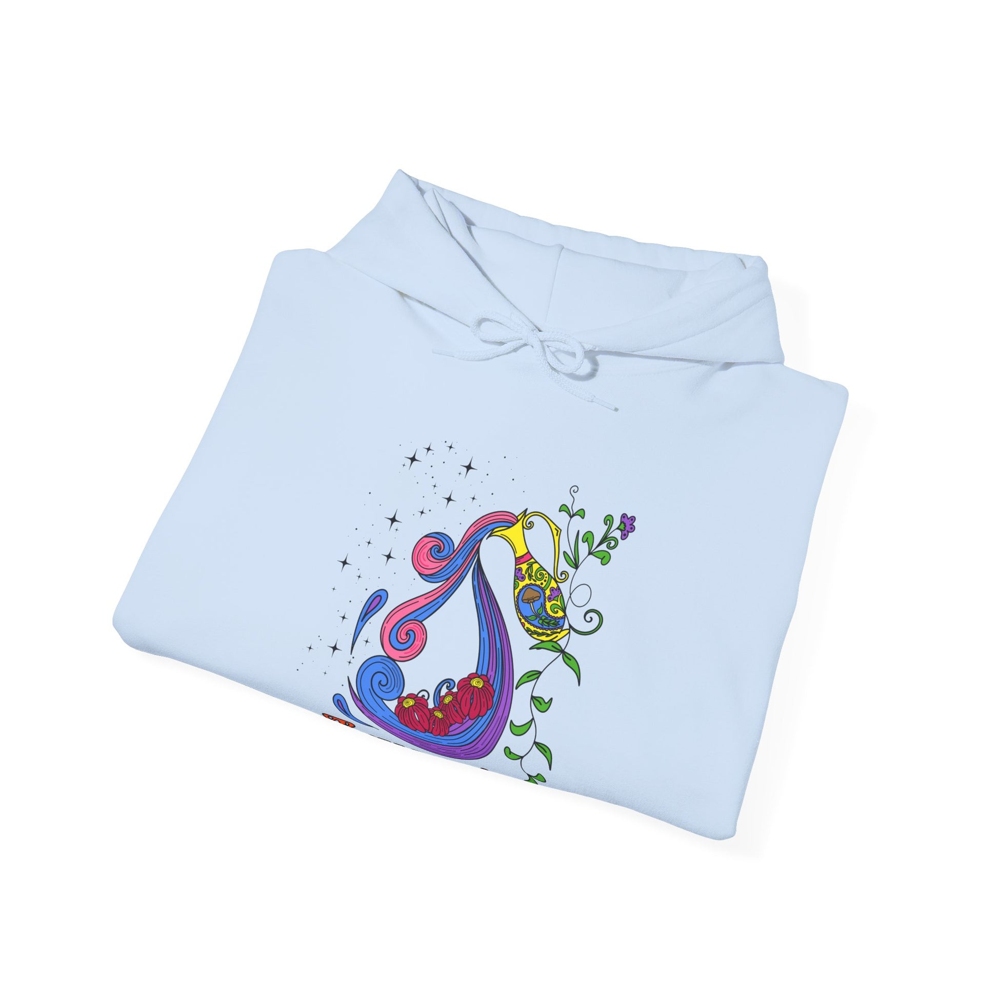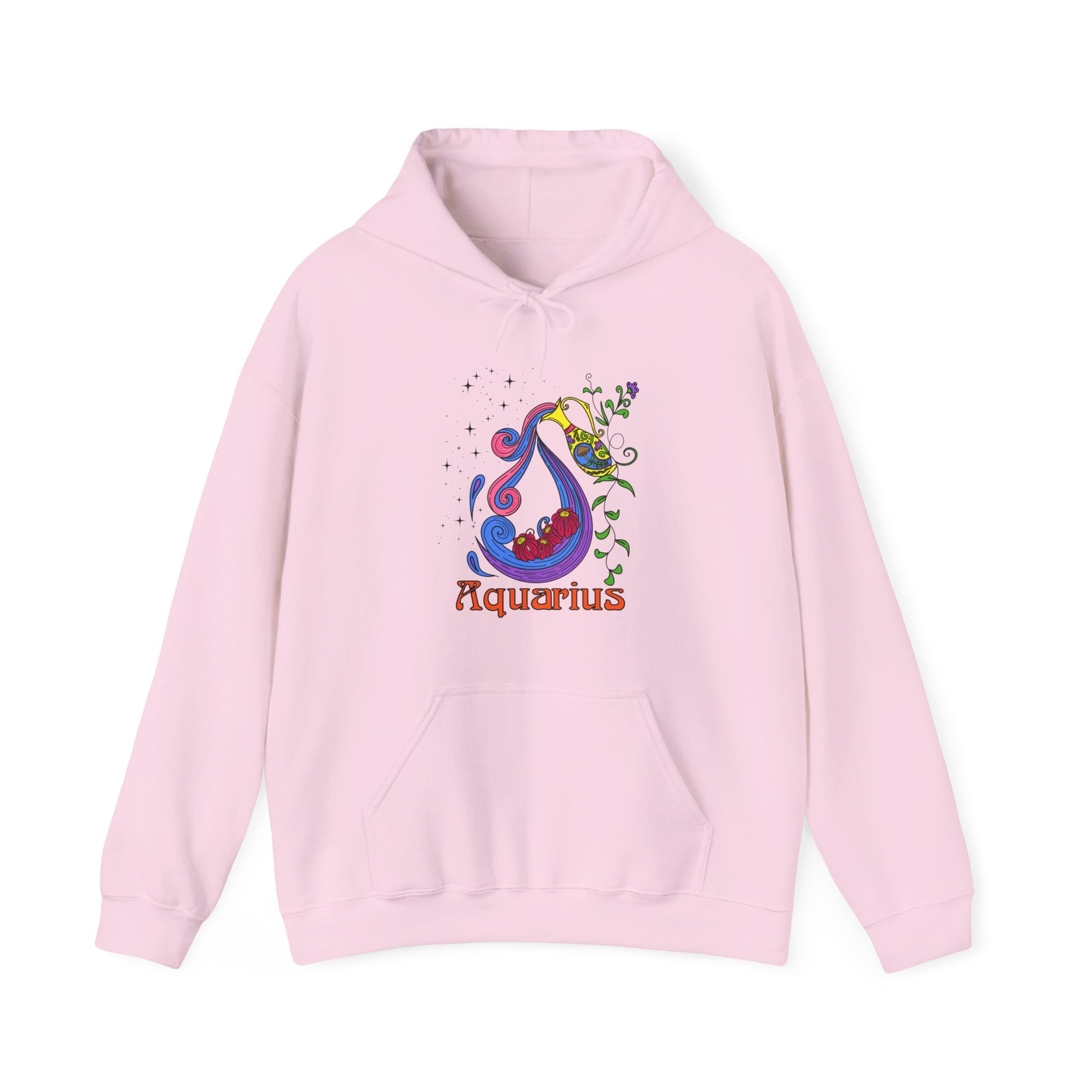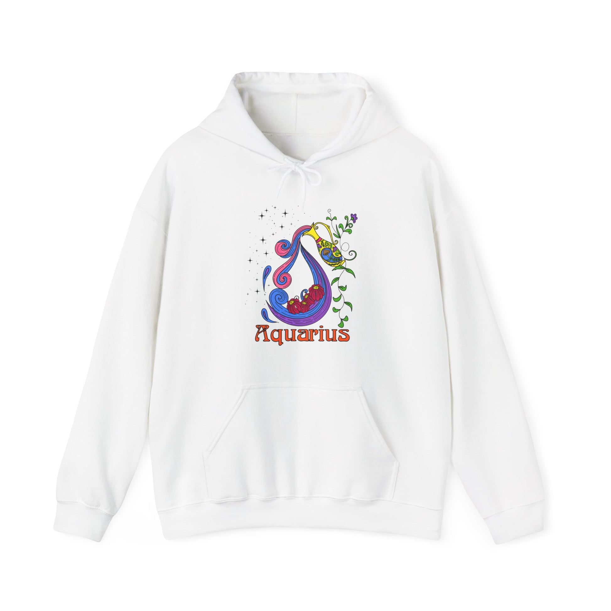 Stay cozy and stylish with this unisex heavy blend hooded sweatshirt. Crafted from a soft, durable material, this sweatshirt is perfect for chilly days or relaxed nights in. With a vibrant Aquarius design, it adds a unique flair to your wardrobe, making it an excellent choice for astrology enthusiasts. The kangaroo pouch pocket is great for keeping your hands warm or storing essentials while on the go, allowing for both functionality and comfort in your daily life. Ideal for casual outings, holidays, or cozy nights at home, this sweatshirt makes a thoughtful gift for birthdays, holidays, or just because anyone who loves fashion and astrology will appreciate it. Wear it to celebrate Zodiac-themed parties or just lounge around, embodying a mix of style and warmth. Product features - Spacious kangaroo pouch pocket for warmth and storage - Adjustable drawstring hood for a tailored fit - Seamless tubular knit design reduces waste and enhances appeal - Durable fabric blend of 50% cotton and 50% polyester for smooth comfort - Embroidery options available for a personalized touch. Care instructions - Tumble dry: medium - Iron, steam or dry: low heat - Do not dryclean - Machine wash: cold (max 30C or 90F) - Non-chlorine: bleach as needed