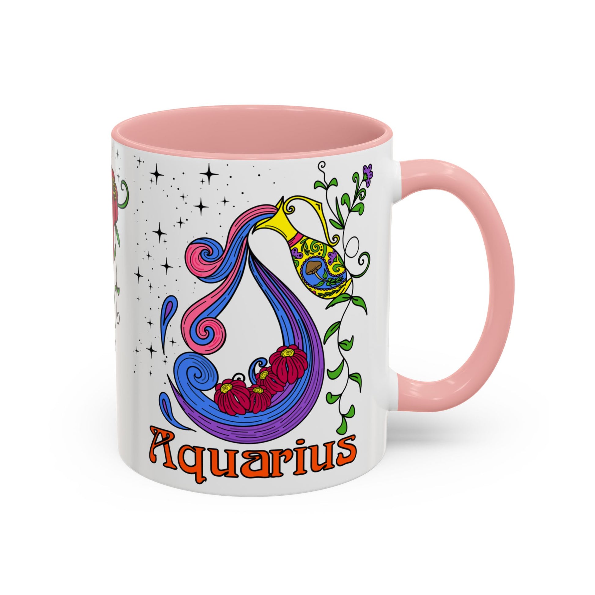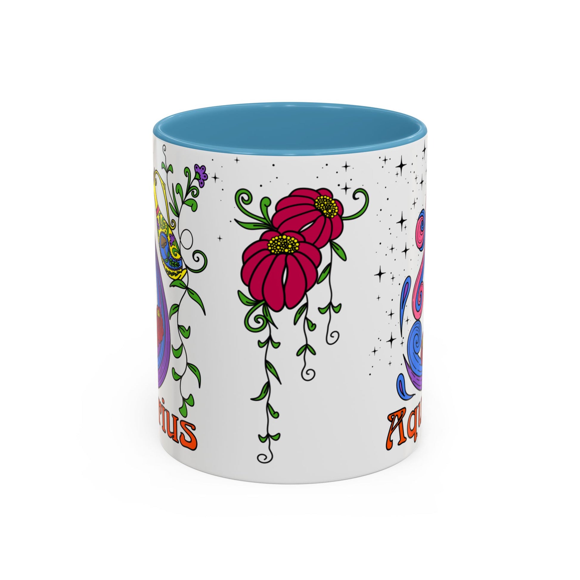 Aquarius star sign mug, water pale zodiac astrology coffee cup, Horoscope birthday gift mug, Bold retro colourful Design ceramic mug