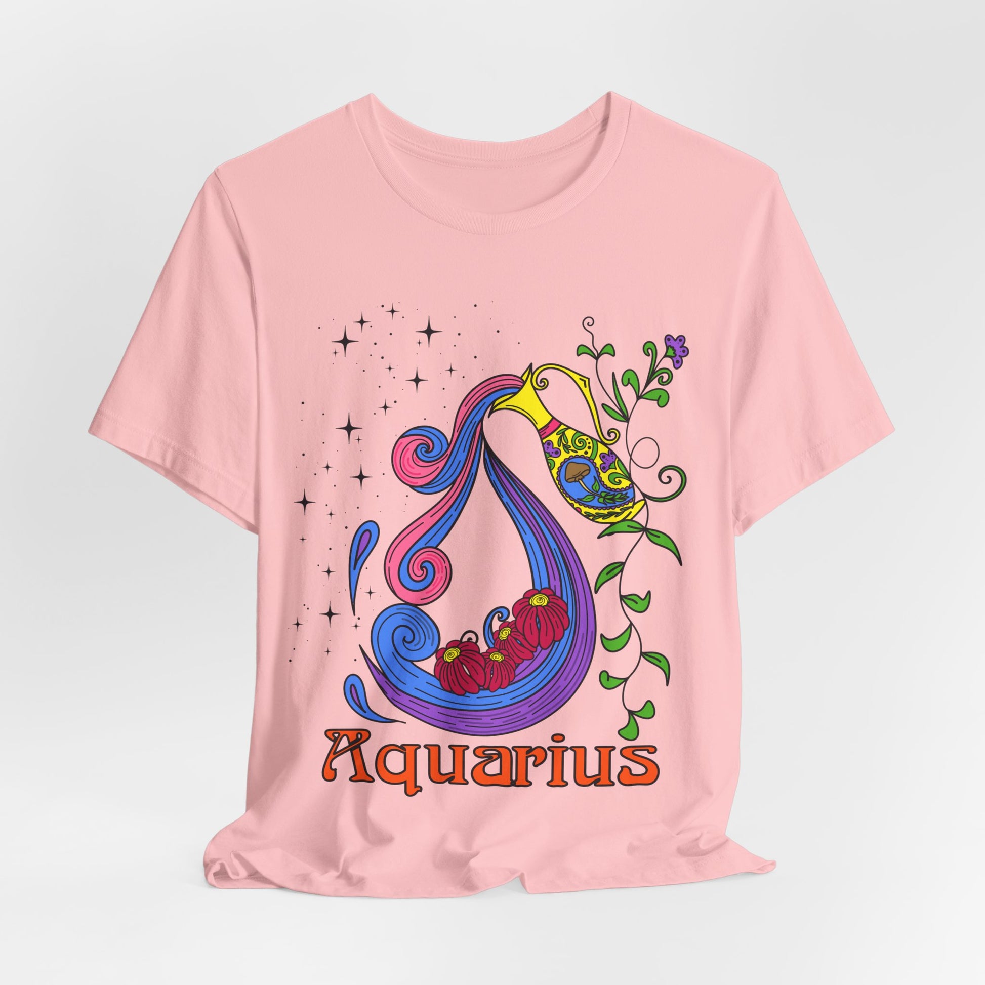 Aquarius star sign T-Shirt, water pale zodiac astrology top, Horoscope birthday gift Tee, Bold retro colourful Design tshirt