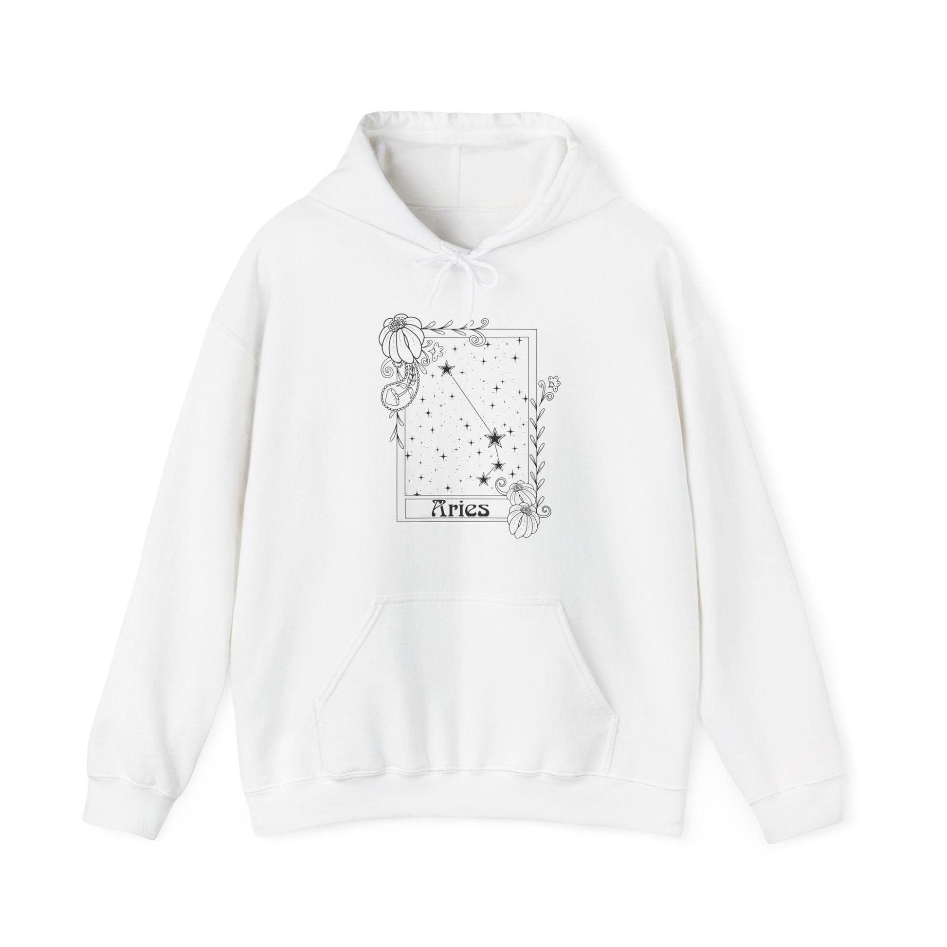 Stay cozy and stylish with this unisex heavy blend hooded sweatshirt. Crafted from a soft, durable material, this sweatshirt is perfect for chilly days or relaxed nights in. With a whimsical Aries constellation design, it adds a unique flair to your wardrobe, making it an excellent choice for astrology enthusiasts. The kangaroo pouch pocket is great for keeping your hands warm or storing essentials while on the go, allowing for both functionality and comfort in your daily life. Ideal for casual outings, holidays, or cozy nights at home, this sweatshirt makes a thoughtful gift for birthdays, holidays, or just because anyone who loves fashion and astrology will appreciate it. Wear it to celebrate Zodiac-themed parties or just lounge around, embodying a mix of style and warmth. Product features - Spacious kangaroo pouch pocket for warmth and storage - Adjustable drawstring hood for a tailored fit - Seamless tubular knit design reduces waste and enhances appeal - Durable fabric blend of 50% cotton and 50% polyester for smooth comfort - Embroidery options available for a personalized touch. Care instructions - Tumble dry: medium - Iron, steam or dry: low heat - Do not dryclean - Machine wash: cold (max 30C or 90F) - Non-chlorine: bleach as needed