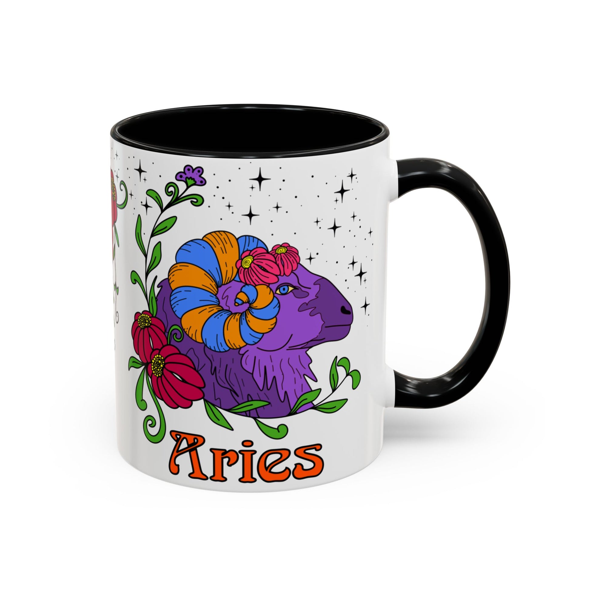 Aries star sign mug, Ram zodiac astrology coffee cup, Horoscope birthday gift mug, Bold retro colourful Design ceramic mug