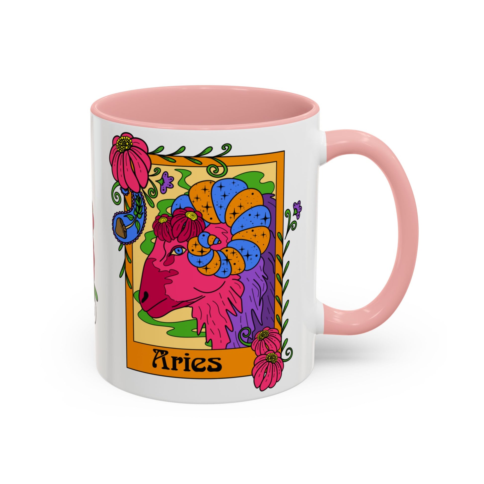 Aries star sign mug, Ram zodiac astrology coffee cup, Horoscope birthday gift mug, Bold retro colourful Design ceramic mug