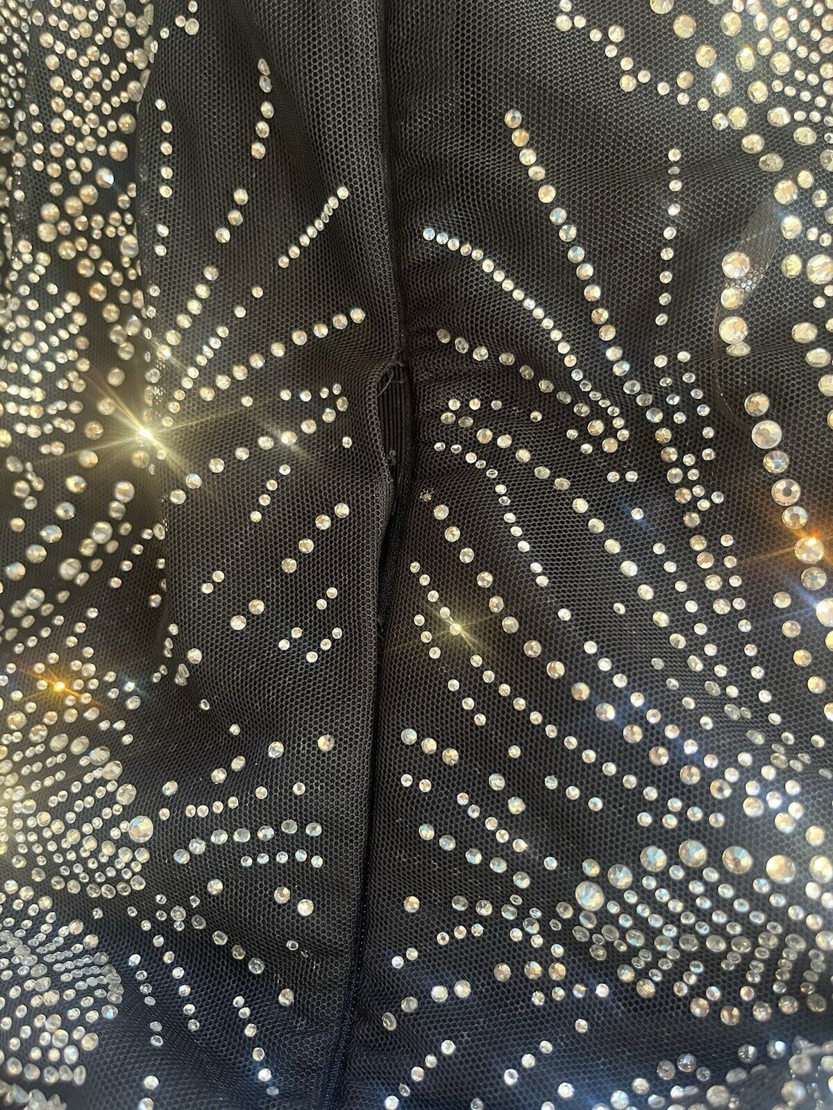 There is a small ares by the zip that has come unstitched and a few missing embellishments but not noticeable when wearing