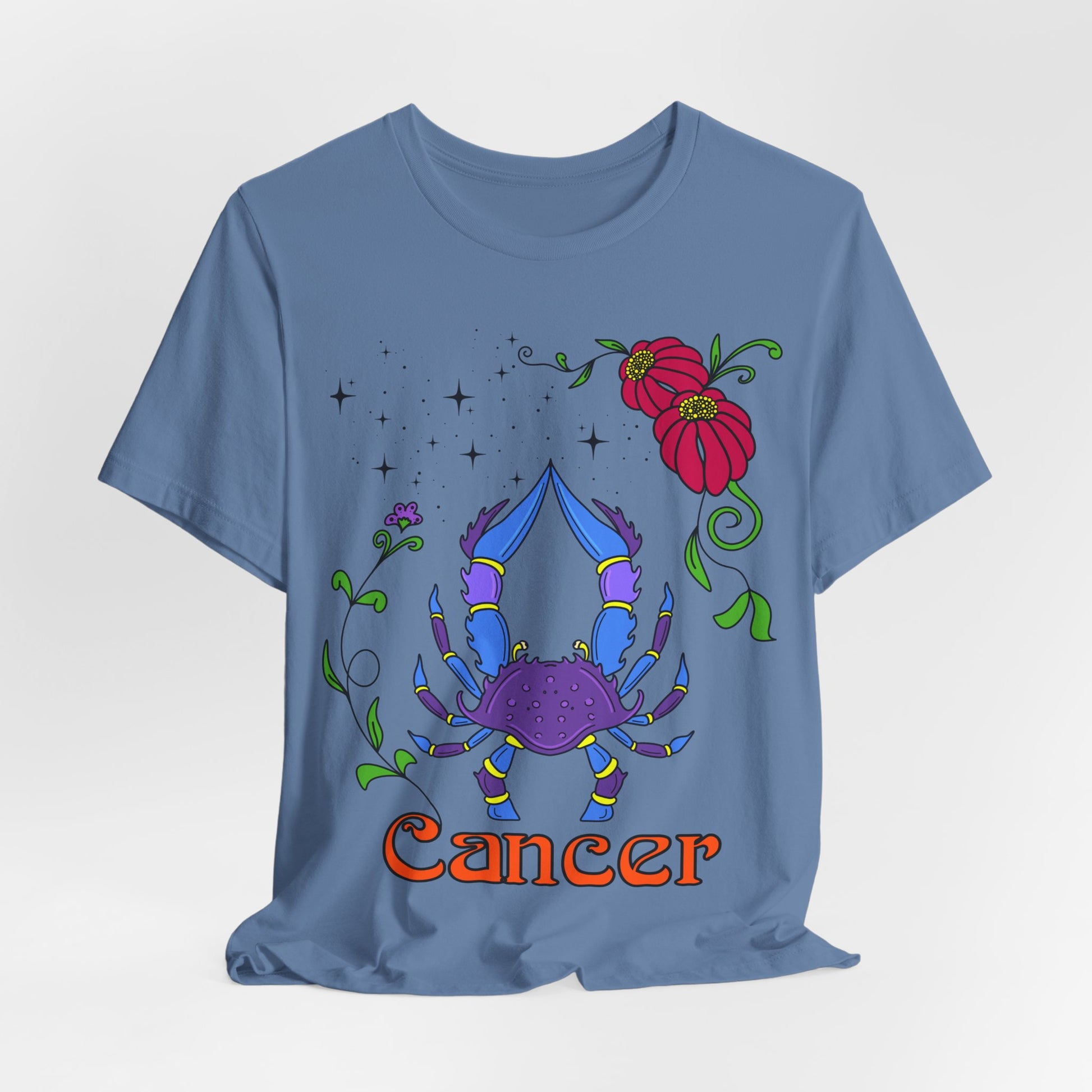 Introducing a vibrant and artistic unisex lightweight short sleeve T-shirt that embodies creativity and individuality. This shirt features an eye-catching design inspired by the Cancer zodiac, adorned with colourful crab and floral elements that bring a touch of whimsy and personality to your wardrobe. Perfect for casual outings or relaxed gatherings, this tee offers versatility, making it suitable for layering or wearing on its own. Ideal for astrology enthusiasts and those who love unique fashion statements, this shirt embraces self-expression and joy. Celebrate birthdays, zodiac-themed events, or simply add a splash of color to your everyday look with this lively piece! Product features - Made with 100% Airlume combed and ring-spun cotton for breathability and comfort - Ribbed knit collar retains its shape and adds a classic touch - Side seams provide structural support for a lasting fit - Vibrant printing techniques ensure detailed designs and smooth finishes - Tear-away label minimizes skin irritations, enhancing comfort firsthand. Care instructions - Machine wash: cold (max 30C or 90F) - Non-chlorine: bleach as needed - Tumble dry: low heat - Iron, steam or dry: medium heat - Do not dryclean