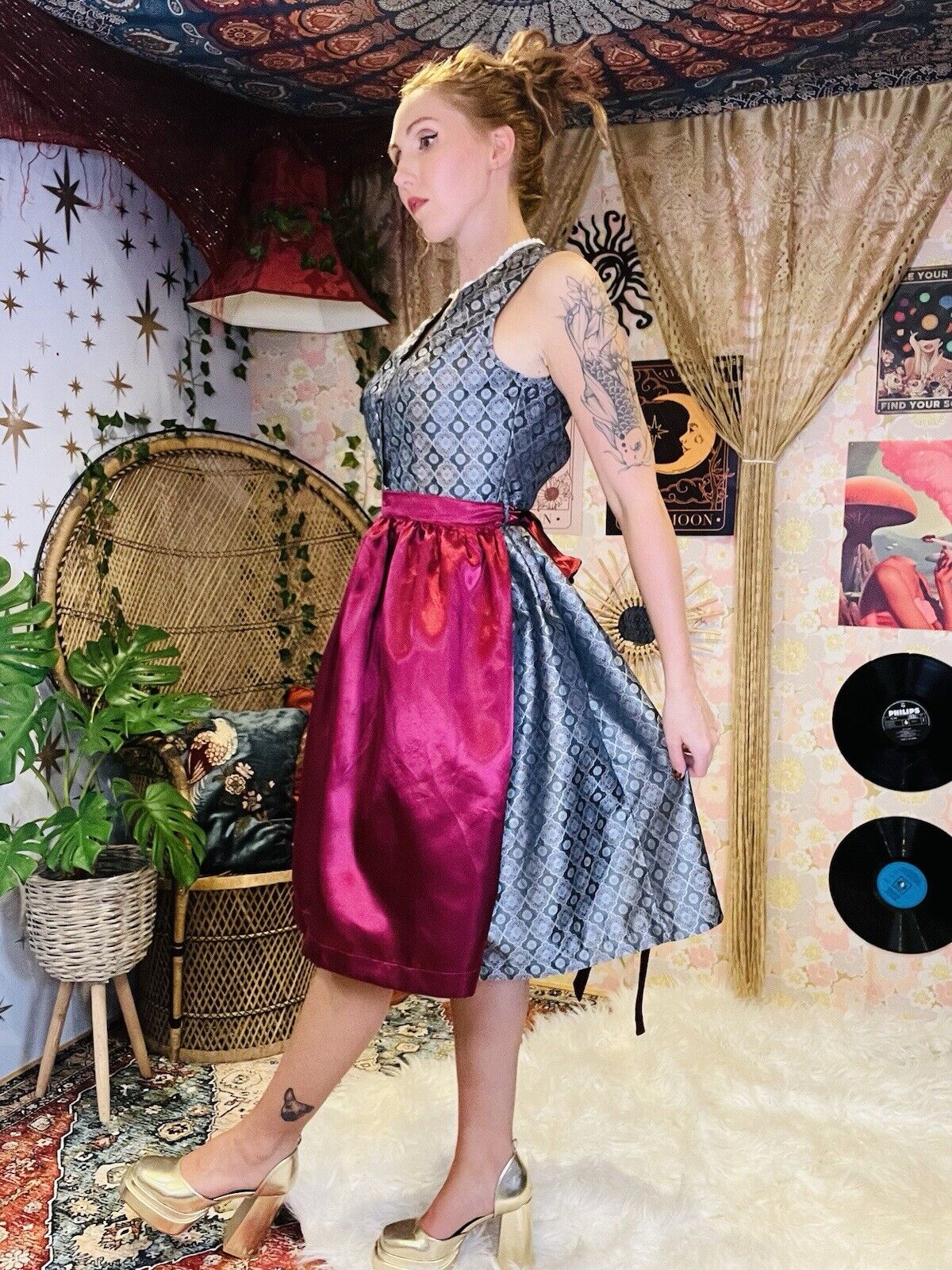 This stunning Ramona Lippert Dirndl dress is perfect for any occasion. The hot pink and silver grey costume is a size 10 and features a knee-length dress with a traditional Dirndl style. The dress is made from high-quality materials and is designed to ensure you look and feel your best.