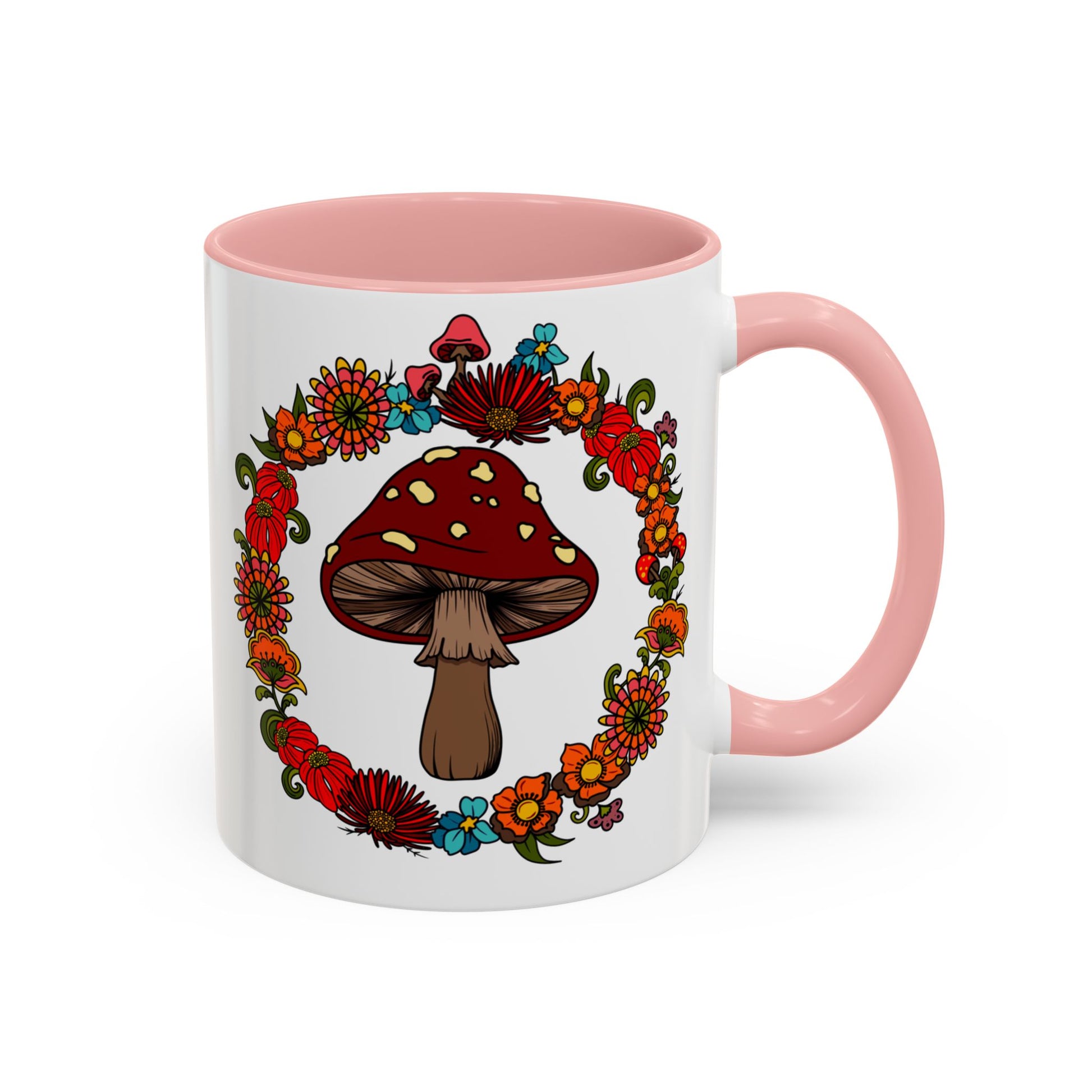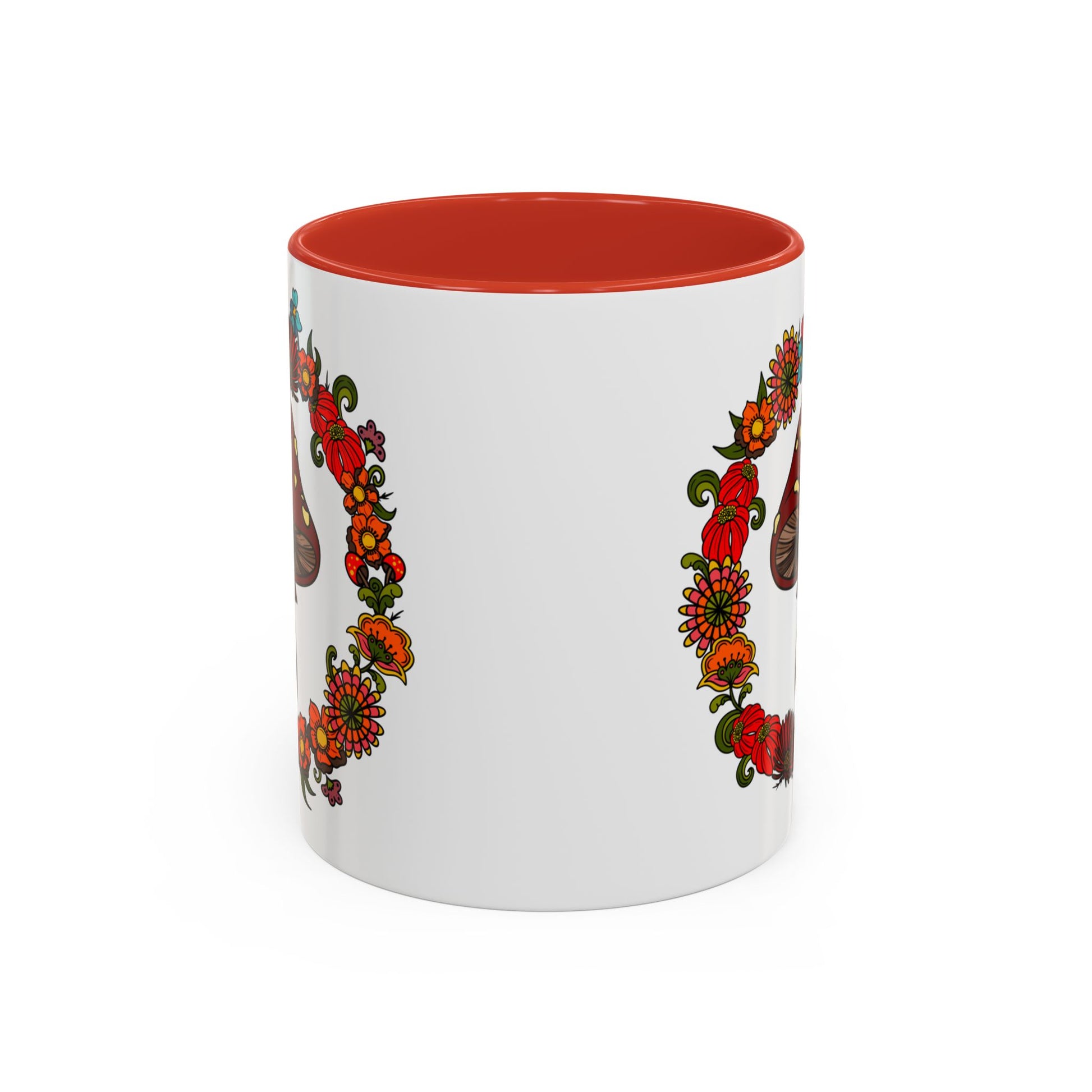 Flower and mushroom mug, Retro Floral 60s 70s tea and coffee cup, Colourful hippie flower power ceramic mug