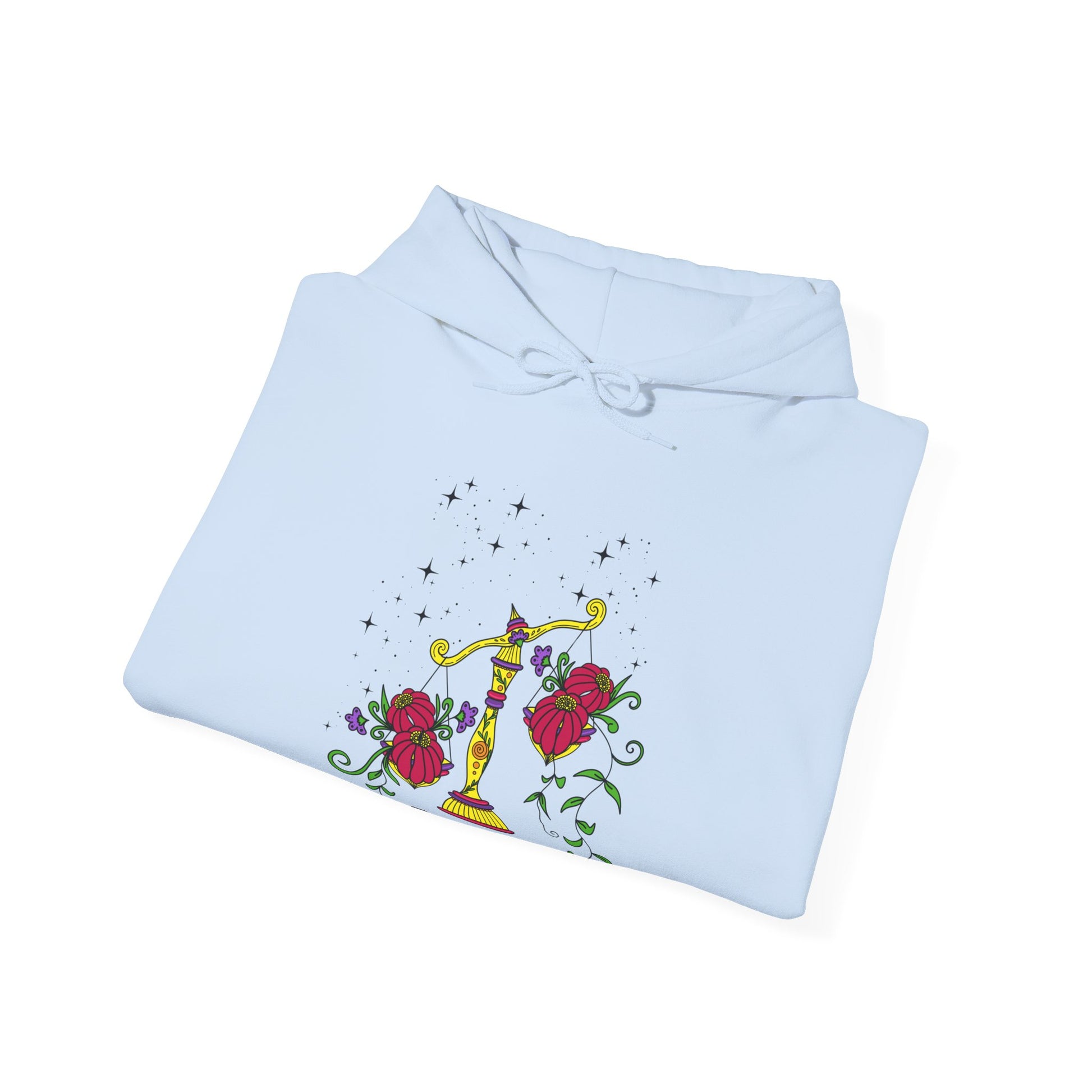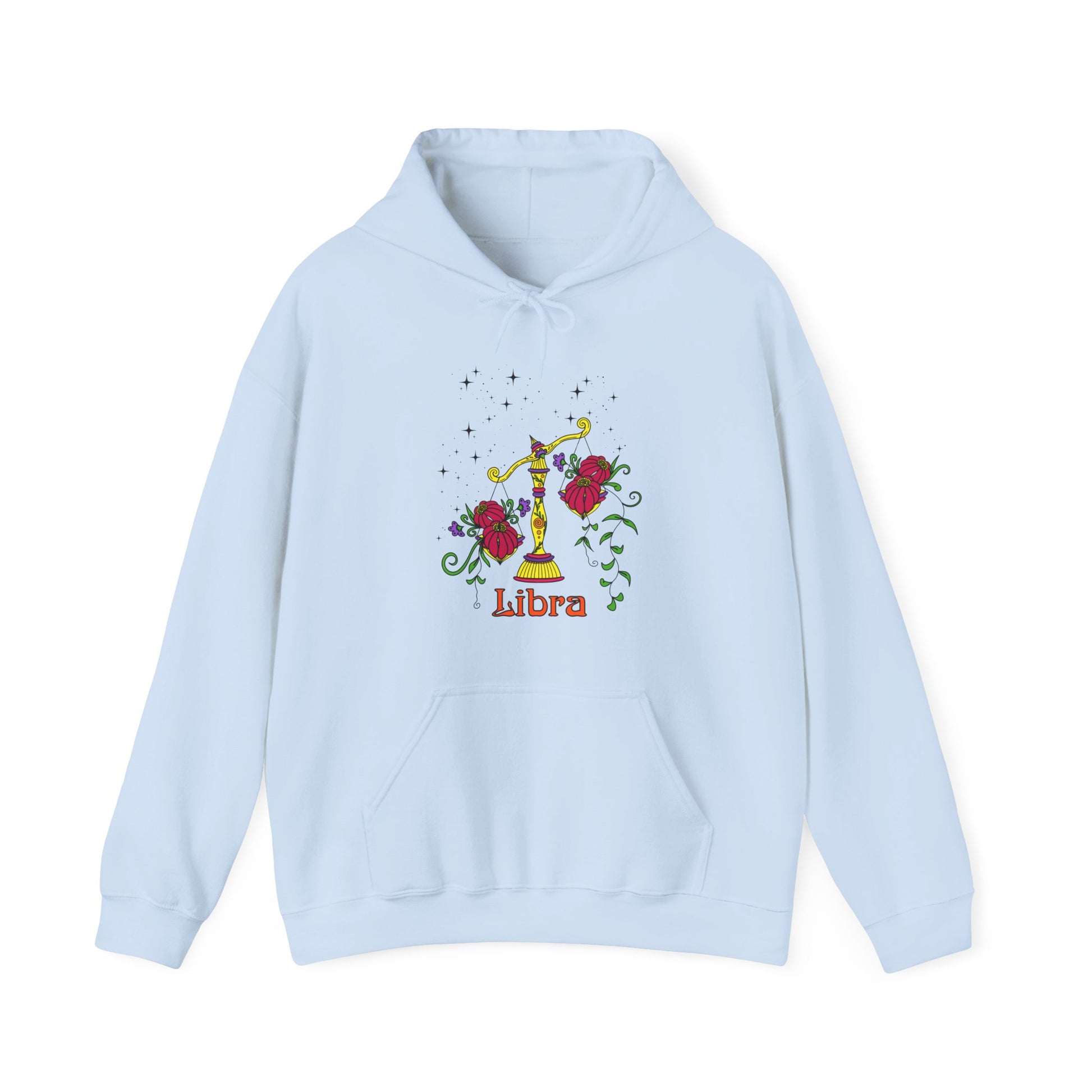 Stay cozy and stylish with this unisex heavy blend hooded sweatshirt. Crafted from a soft, durable material, this sweatshirt is perfect for chilly days or relaxed nights in. With a vibrant Libra design, it adds a unique flair to your wardrobe, making it an excellent choice for astrology enthusiasts. The kangaroo pouch pocket is great for keeping your hands warm or storing essentials while on the go, allowing for both functionality and comfort in your daily life. Ideal for casual outings, holidays, or cozy nights at home, this sweatshirt makes a thoughtful gift for birthdays, holidays, or just because anyone who loves fashion and astrology will appreciate it. Wear it to celebrate Zodiac-themed parties or just lounge around, embodying a mix of style and warmth. Product features - Spacious kangaroo pouch pocket for warmth and storage - Adjustable drawstring hood for a tailored fit - Seamless tubular knit design reduces waste and enhances appeal - Durable fabric blend of 50% cotton and 50% polyester for smooth comfort - Embroidery options available for a personalized touch. Care instructions - Tumble dry: medium - Iron, steam or dry: low heat - Do not dryclean - Machine wash: cold (max 30C or 90F) - Non-chlorine: bleach as needed