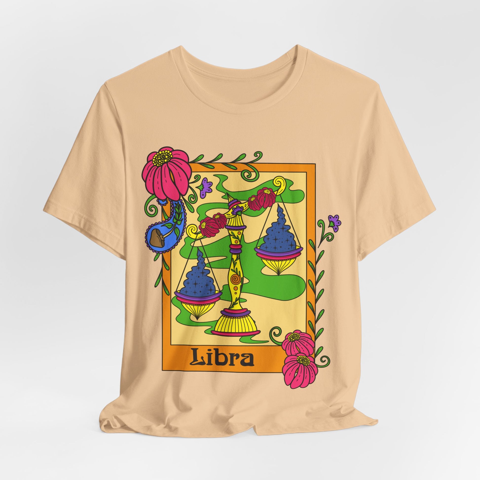 Libra star sign T-Shirt, scales zodiac astrology top, Horoscope birthday gift Tee, Bold retro colourful Design tshirt