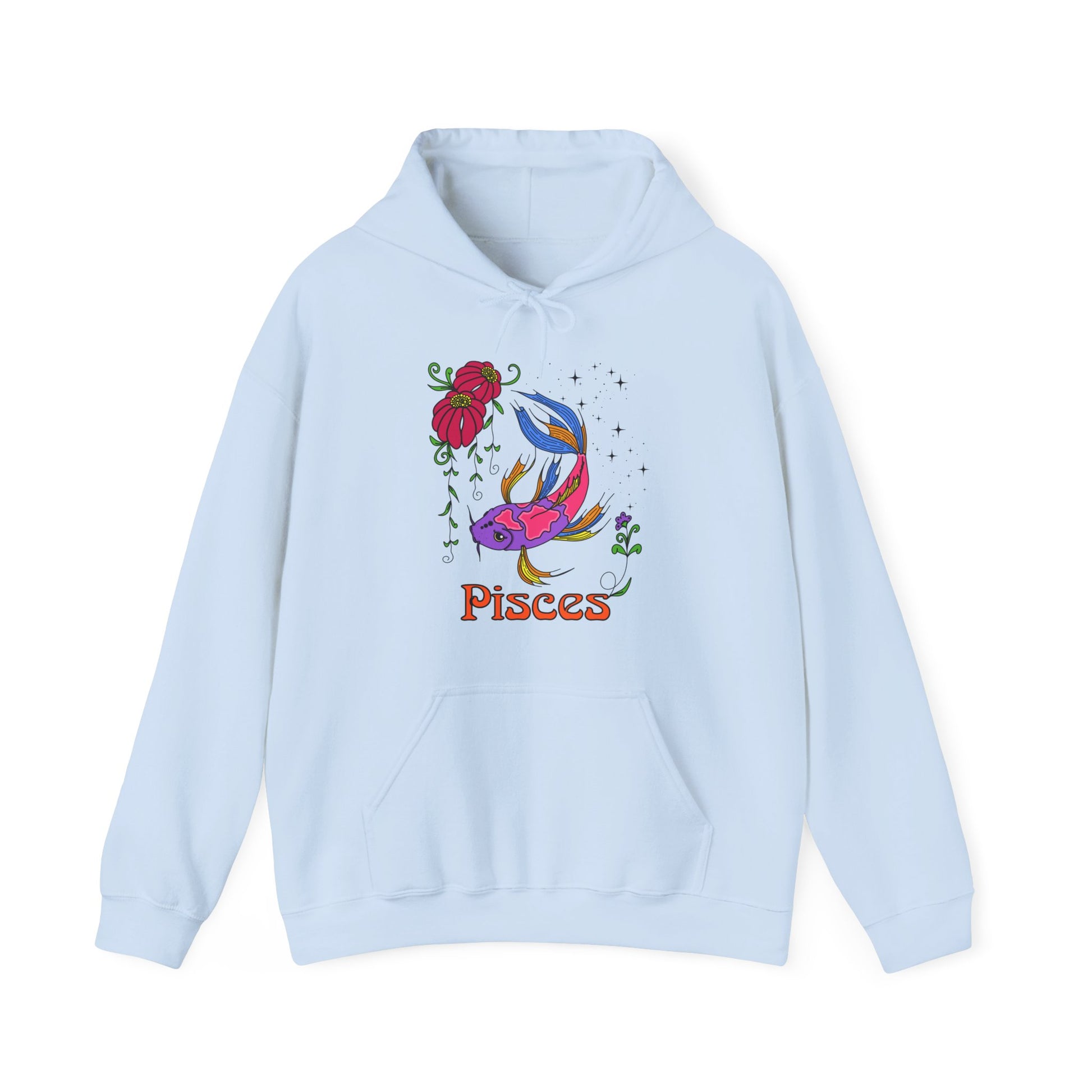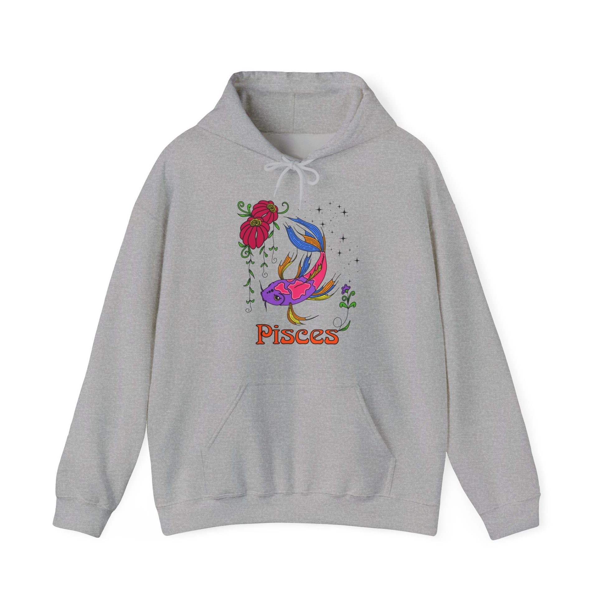 Stay cozy and stylish with this unisex heavy blend hooded sweatshirt. Crafted from a soft, durable material, this sweatshirt is perfect for chilly days or relaxed nights in. With a vibrant Pisces design, it adds a unique flair to your wardrobe, making it an excellent choice for astrology enthusiasts. The kangaroo pouch pocket is great for keeping your hands warm or storing essentials while on the go, allowing for both functionality and comfort in your daily life. Ideal for casual outings, holidays, or cozy nights at home, this sweatshirt makes a thoughtful gift for birthdays, holidays, or just because anyone who loves fashion and astrology will appreciate it. Wear it to celebrate Zodiac-themed parties or just lounge around, embodying a mix of style and warmth. Product features - Spacious kangaroo pouch pocket for warmth and storage - Adjustable drawstring hood for a tailored fit - Seamless tubular knit design reduces waste and enhances appeal - Durable fabric blend of 50% cotton and 50% polyester for smooth comfort - Embroidery options available for a personalized touch. Care instructions - Tumble dry: medium - Iron, steam or dry: low heat - Do not dryclean - Machine wash: cold (max 30C or 90F) - Non-chlorine: bleach as needed