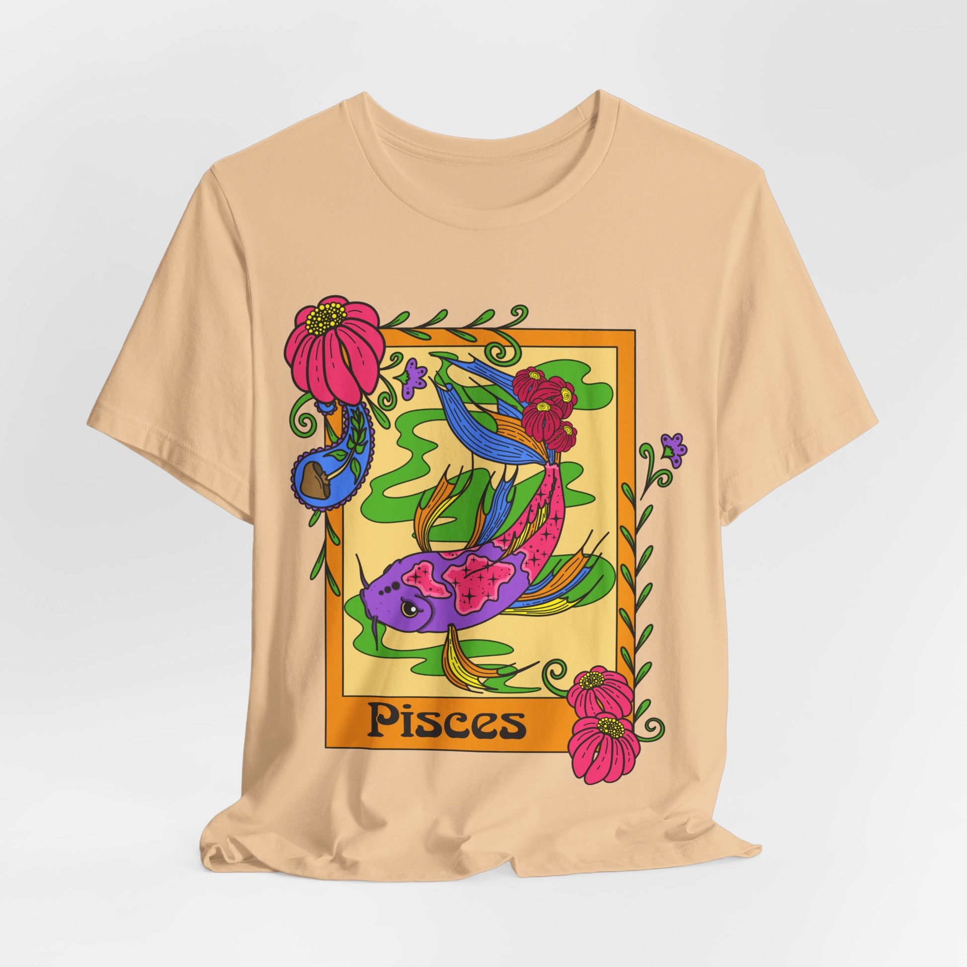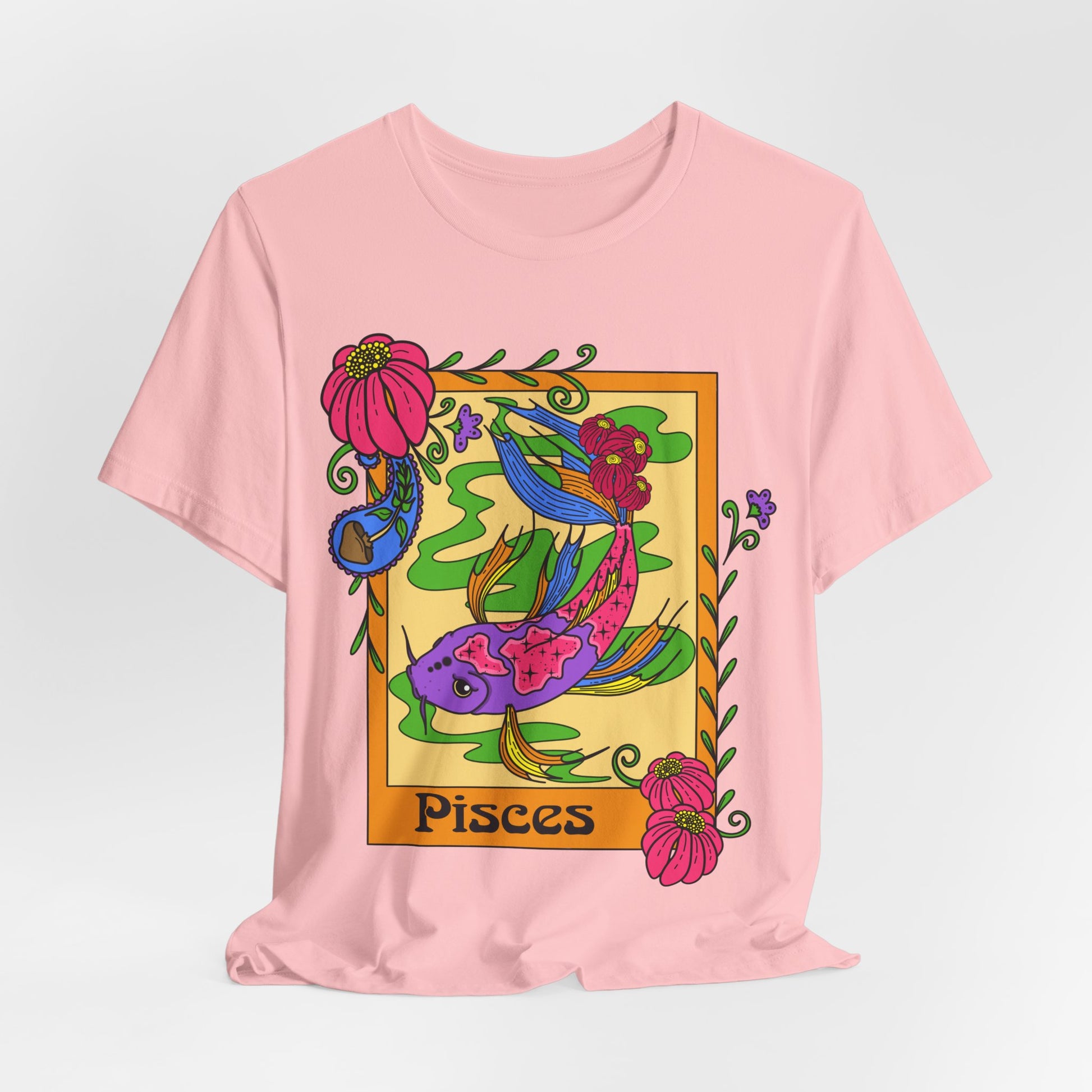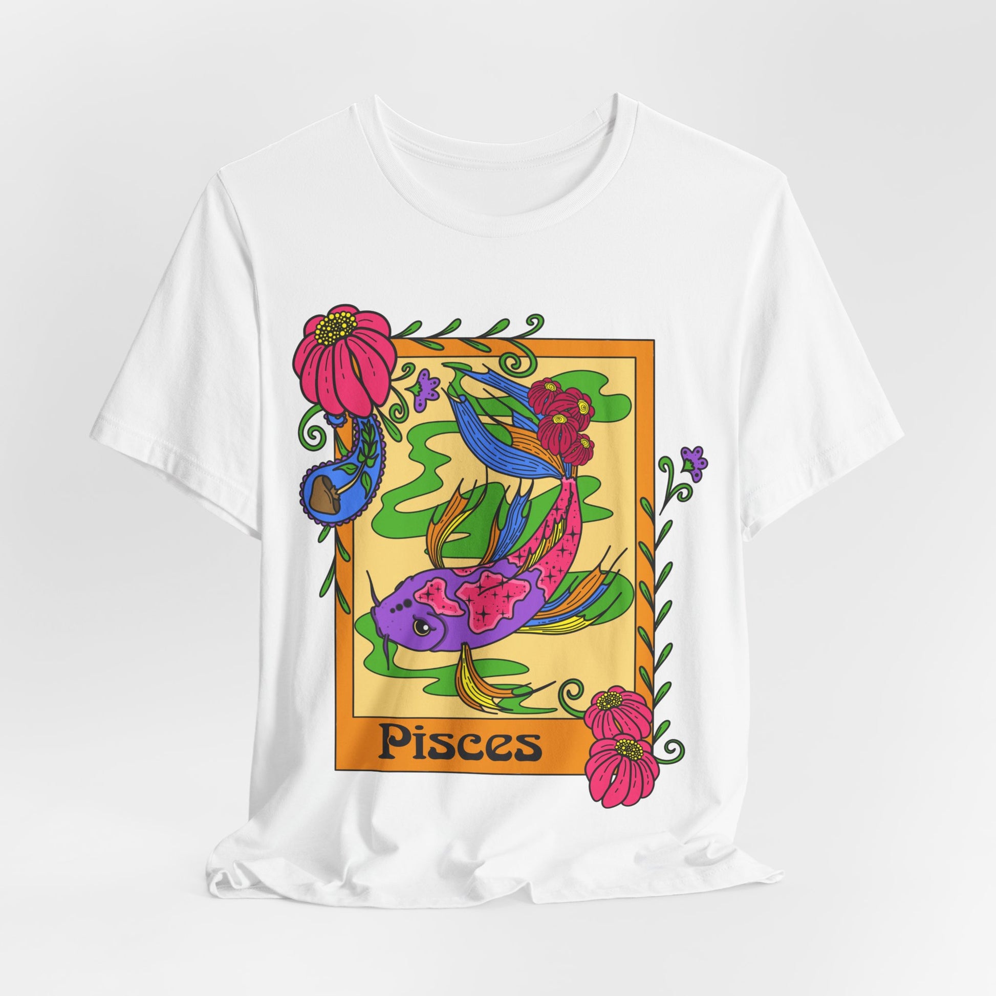 Introducing a vibrant and artistic unisex lightweight short sleeve T-shirt that embodies creativity and individuality. This shirt features an eye-catching design inspired by the Pisces zodiac, adorned with colourful fish and floral elements that bring a touch of whimsy and personality to your wardrobe. Perfect for casual outings or relaxed gatherings, this tee offers versatility, making it suitable for layering or wearing on its own. Ideal for astrology enthusiasts and those who love unique fashion statements, this shirt embraces self-expression and joy. Celebrate birthdays, zodiac-themed events, or simply add a splash of color to your everyday look with this lively piece!