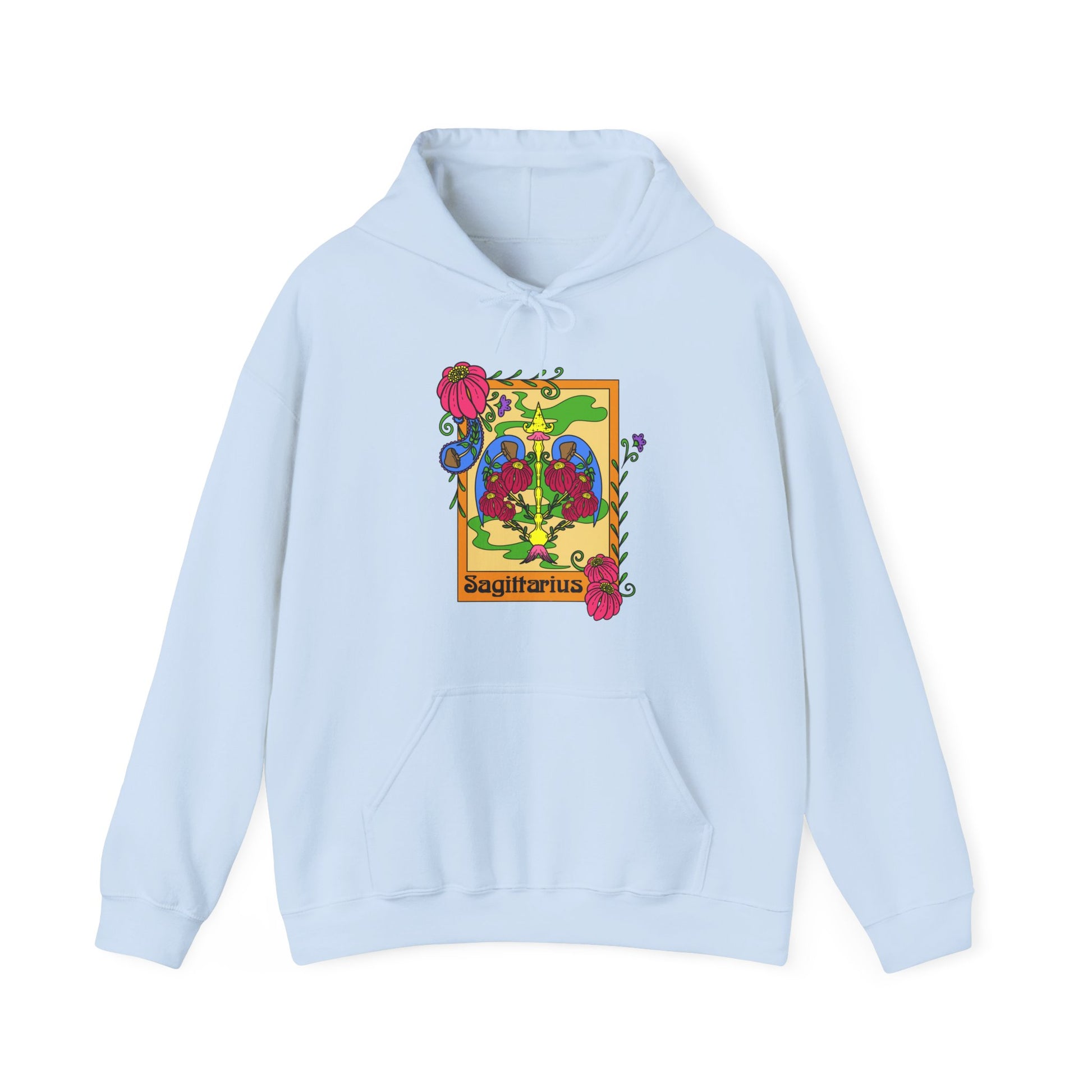 Stay cozy and stylish with this unisex heavy blend hooded sweatshirt. Crafted from a soft, durable material, this sweatshirt is perfect for chilly days or relaxed nights in. With a vibrant Sagittarius design, it adds a unique flair to your wardrobe, making it an excellent choice for astrology enthusiasts. The kangaroo pouch pocket is great for keeping your hands warm or storing essentials while on the go, allowing for both functionality and comfort in your daily life. Ideal for casual outings, holidays, or cozy nights at home, this sweatshirt makes a thoughtful gift for birthdays, holidays, or just because anyone who loves fashion and astrology will appreciate it. Wear it to celebrate Zodiac-themed parties or just lounge around, embodying a mix of style and warmth. Product features - Spacious kangaroo pouch pocket for warmth and storage - Adjustable drawstring hood for a tailored fit - Seamless tubular knit design reduces waste and enhances appeal - Durable fabric blend of 50% cotton and 50% polyester for smooth comfort - Embroidery options available for a personalized touch. Care instructions - Tumble dry: medium - Iron, steam or dry: low heat - Do not dryclean - Machine wash: cold (max 30C or 90F) - Non-chlorine: bleach as needed