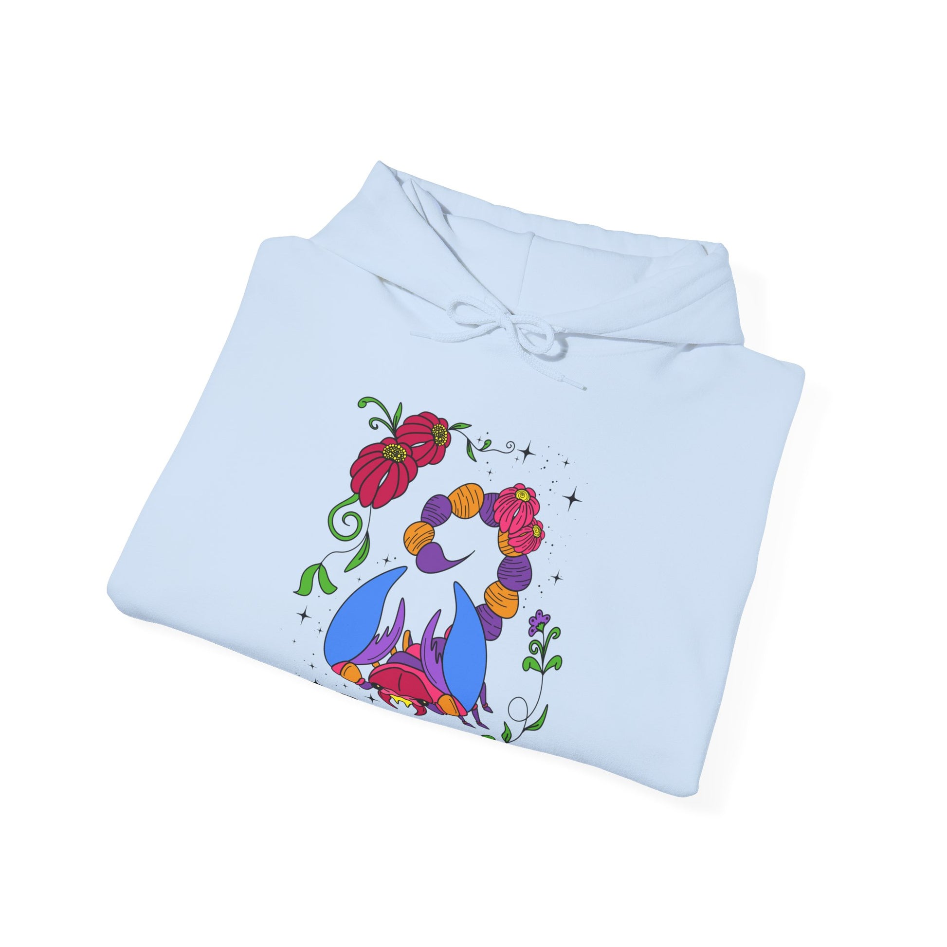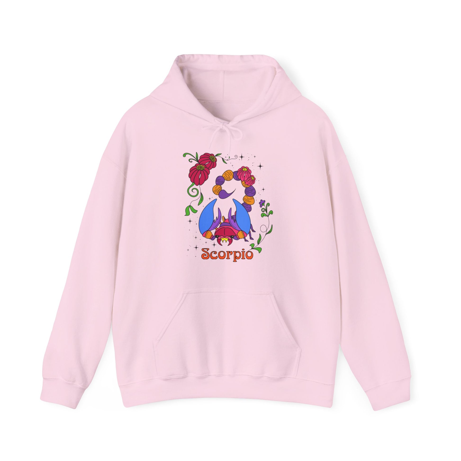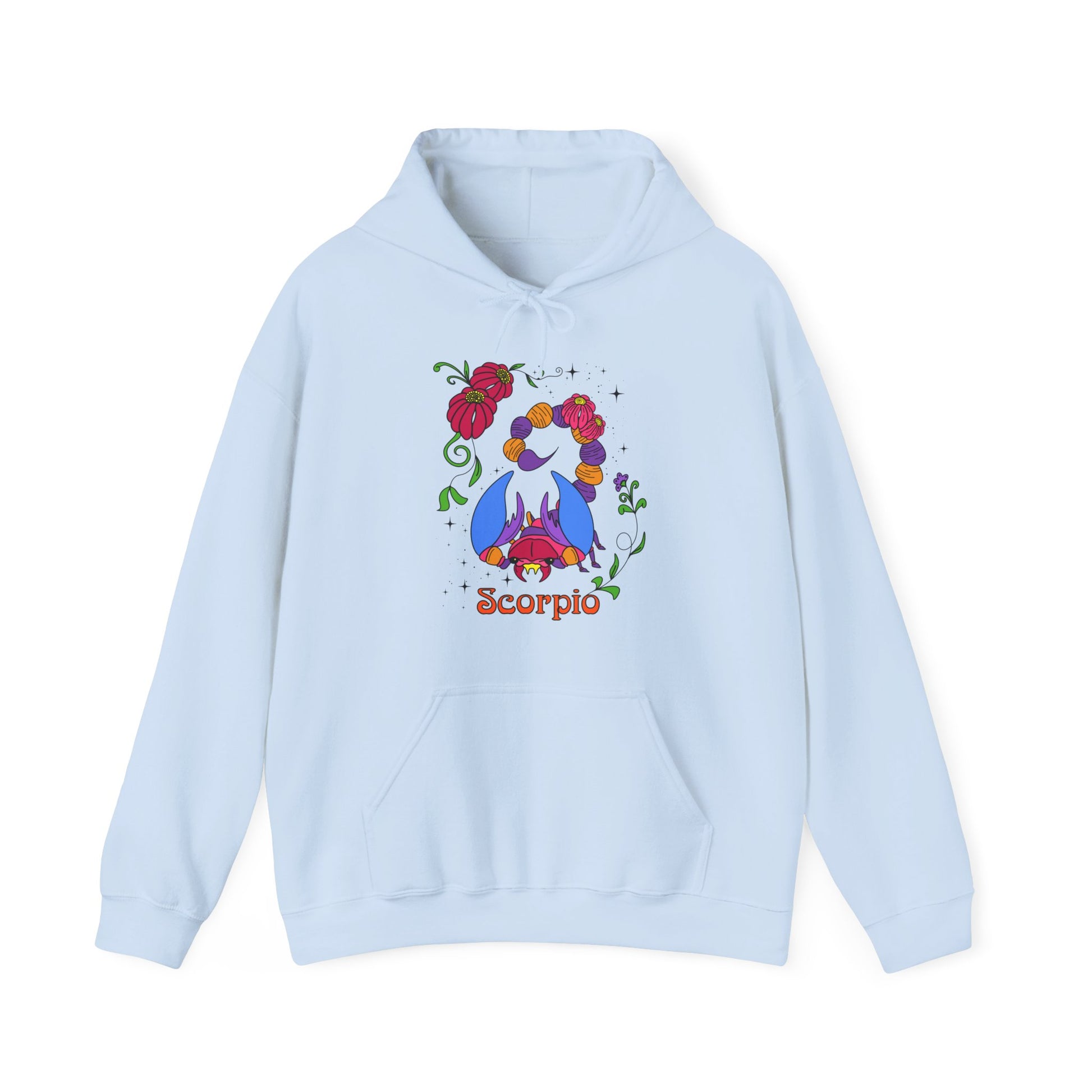 Stay cozy and stylish with this unisex heavy blend hooded sweatshirt. Crafted from a soft, durable material, this sweatshirt is perfect for chilly days or relaxed nights in. With a vibrant Scorpio design, it adds a unique flair to your wardrobe, making it an excellent choice for astrology enthusiasts. The kangaroo pouch pocket is great for keeping your hands warm or storing essentials while on the go, allowing for both functionality and comfort in your daily life. Ideal for casual outings, holidays, or cozy nights at home, this sweatshirt makes a thoughtful gift for birthdays, holidays, or just because anyone who loves fashion and astrology will appreciate it. Wear it to celebrate Zodiac-themed parties or just lounge around, embodying a mix of style and warmth. Product features - Spacious kangaroo pouch pocket for warmth and storage - Adjustable drawstring hood for a tailored fit - Seamless tubular knit design reduces waste and enhances appeal - Durable fabric blend of 50% cotton and 50% polyester for smooth comfort - Embroidery options available for a personalized touch. Care instructions - Tumble dry: medium - Iron, steam or dry: low heat - Do not dryclean - Machine wash: cold (max 30C or 90F) - Non-chlorine: bleach as needed