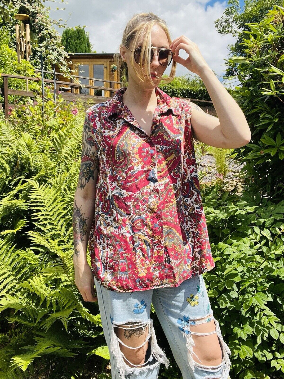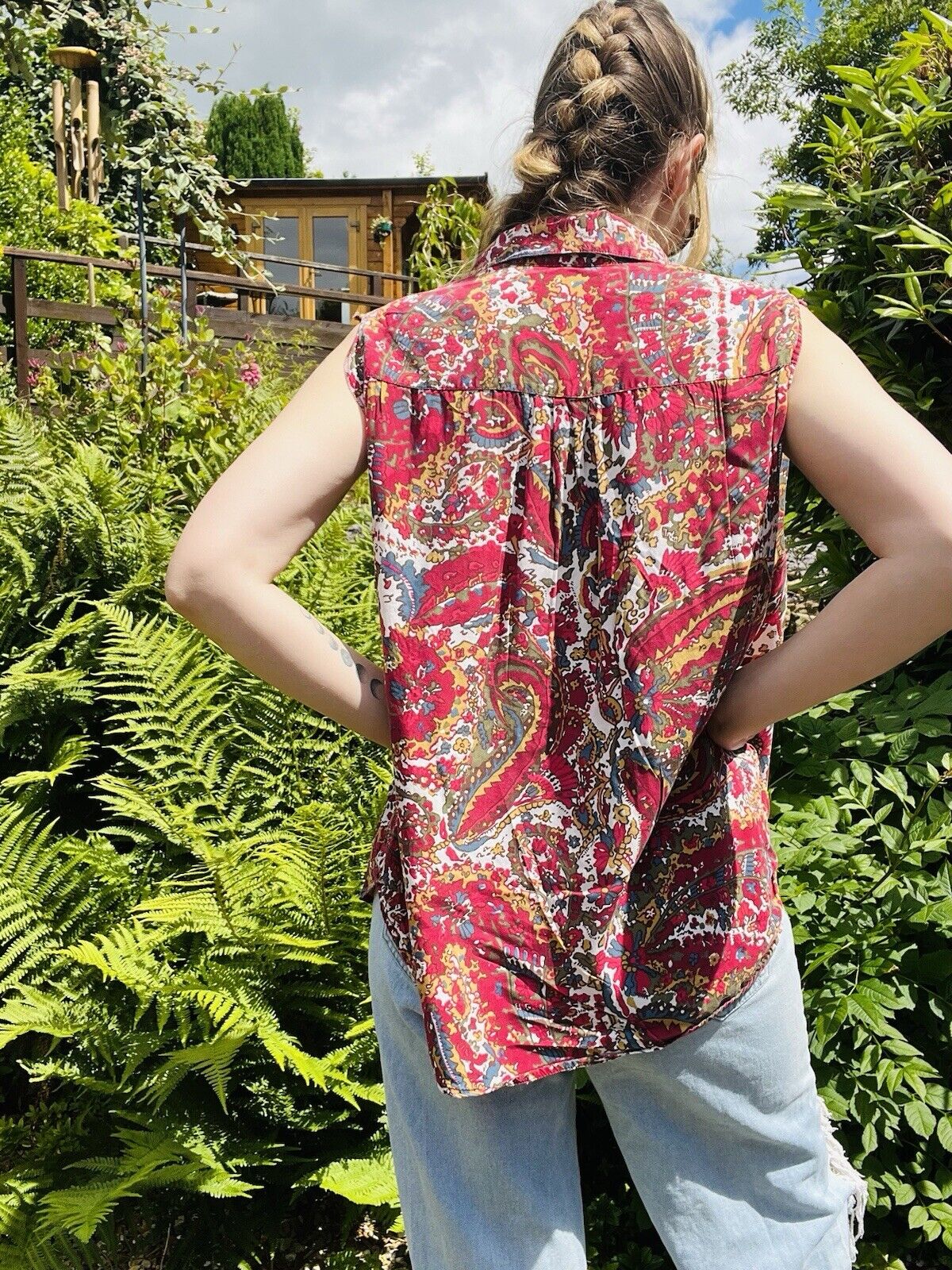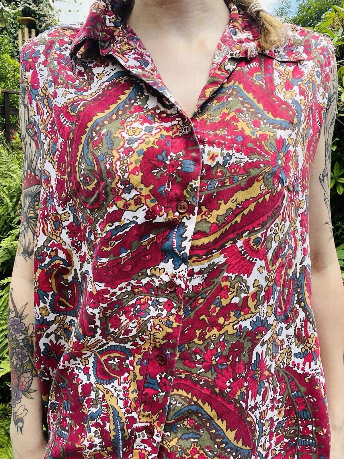 Sleeveless Paisley Shirt Blouse By March Landing II Made In Sri Lanka Size 18