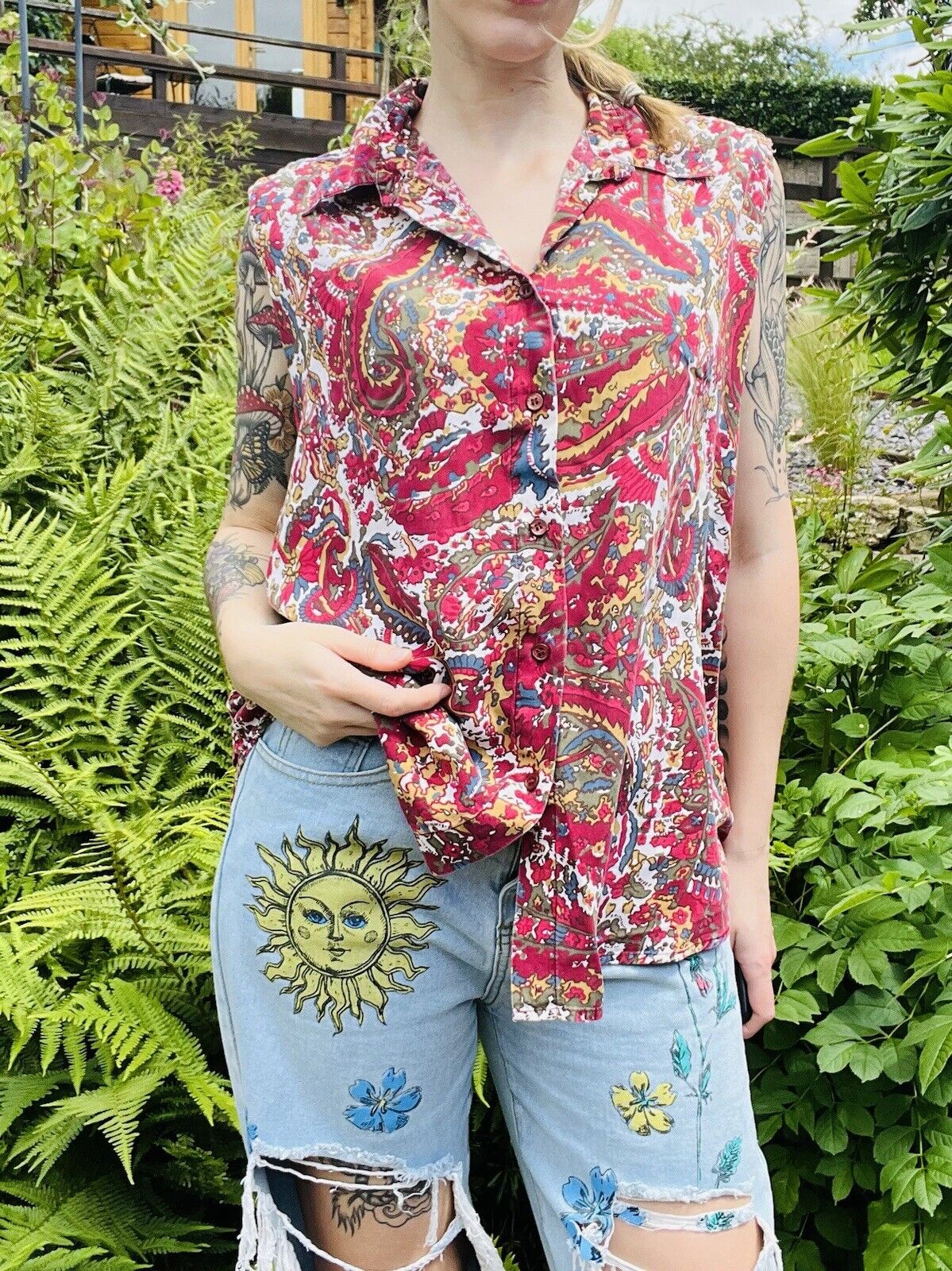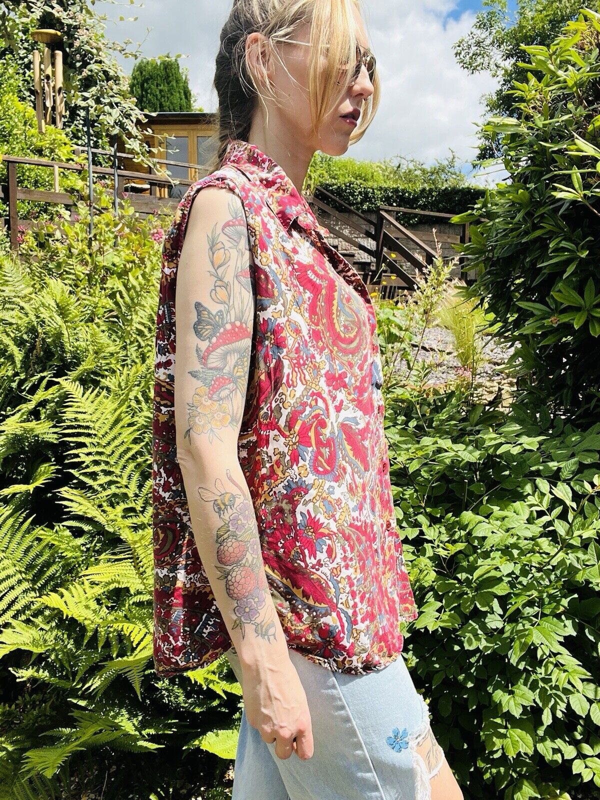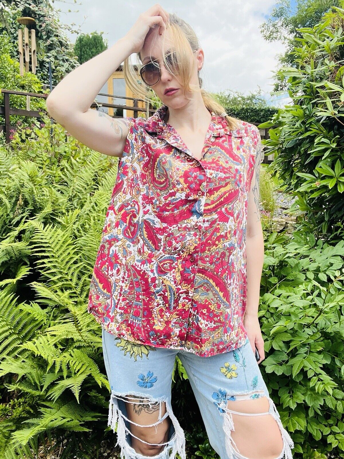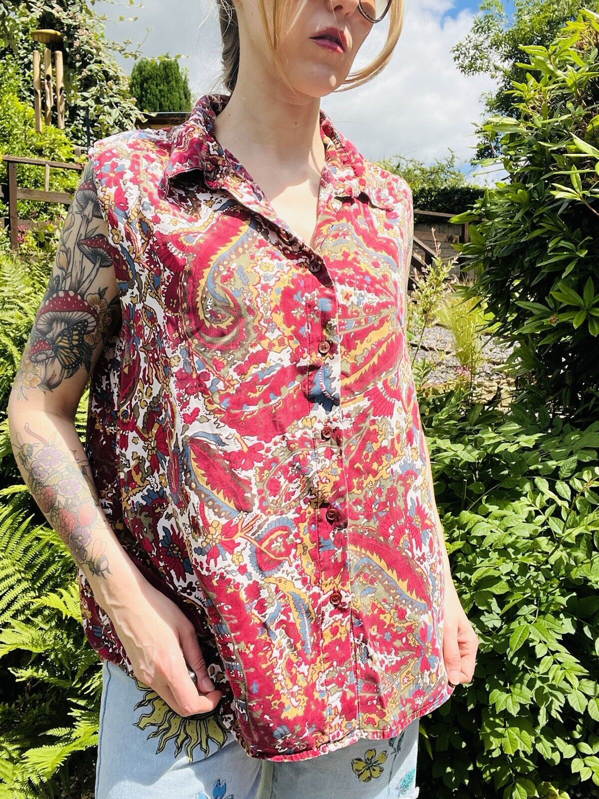 Sleeveless Paisley Shirt Blouse By March Landing II Made In Sri Lanka Size 18