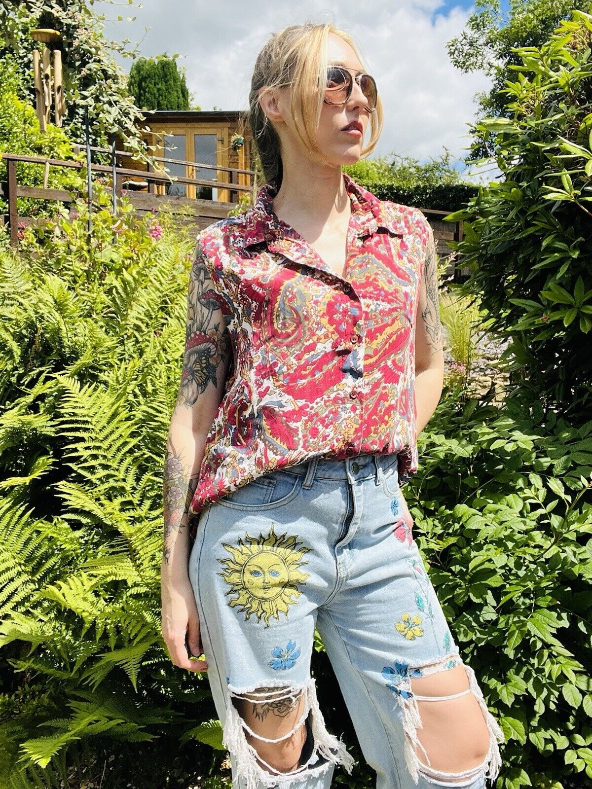 This beautiful blouse by Marsh Landing features a stunning paisley pattern in a vibrant red colour. The sleeveless design makes it perfect for warm weather, and it is made in Sri Lanka with high-quality materials. This blouse is a size 18 and fits regular size types.