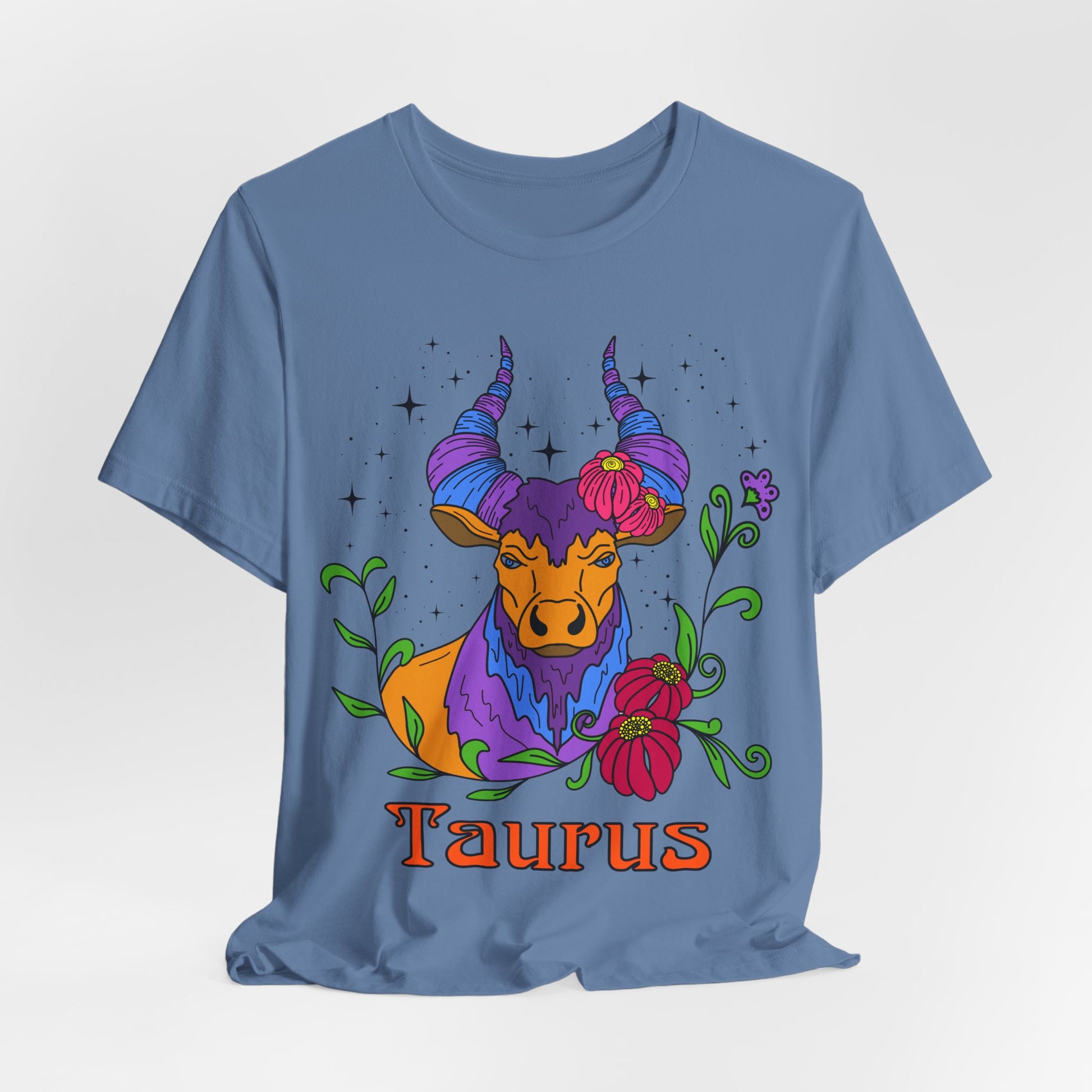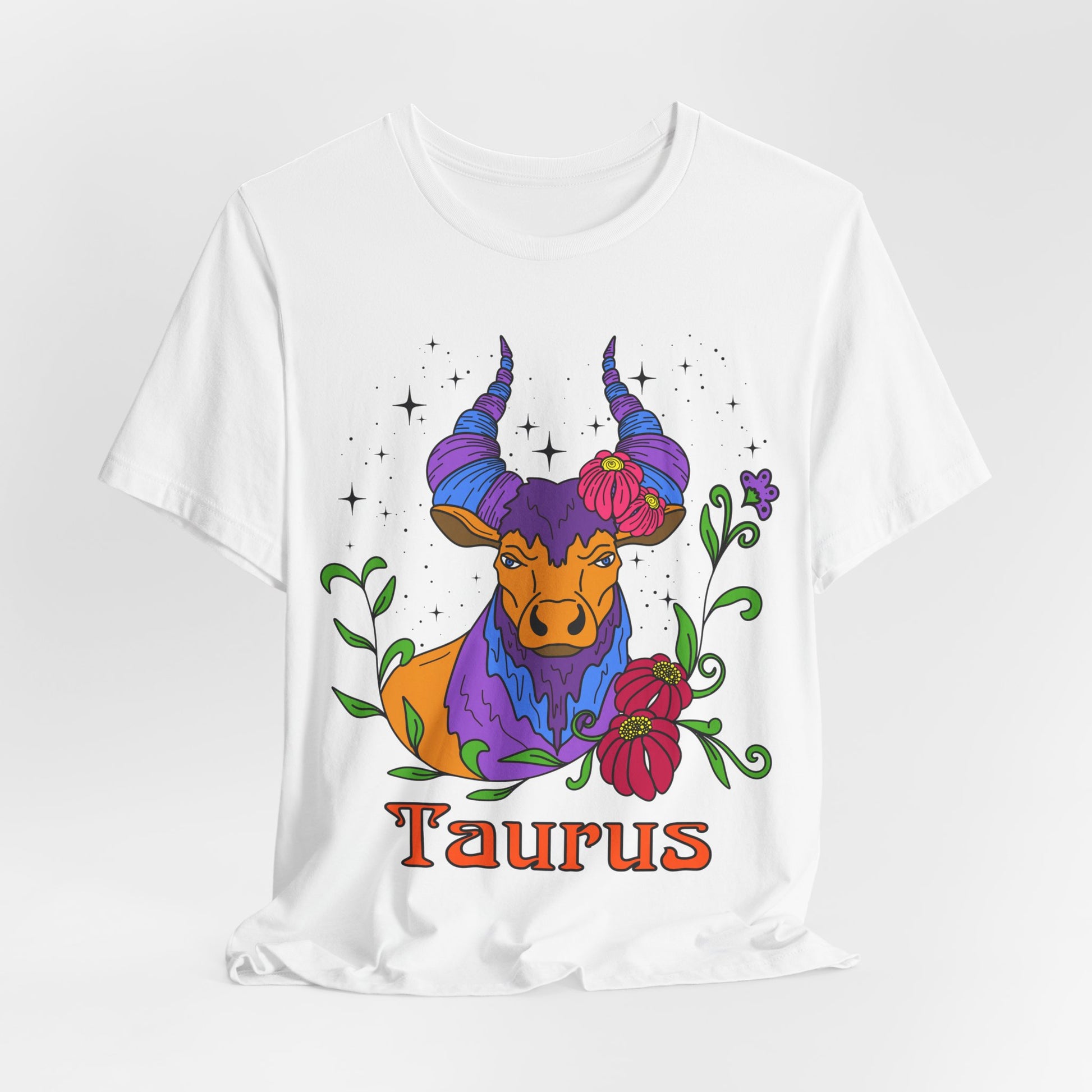Introducing a vibrant and artistic unisex lightweight short sleeve T-shirt that embodies creativity and individuality. This shirt features an eye-catching design inspired by the Taurus zodiac, adorned with colourful bull and floral elements that bring a touch of whimsy and personality to your wardrobe. Perfect for casual outings or relaxed gatherings, this tee offers versatility, making it suitable for layering or wearing on its own. Ideal for astrology enthusiasts and those who love unique fashion statements, this shirt embraces self-expression and joy. Celebrate birthdays, zodiac-themed events, or simply add a splash of color to your everyday look with this lively piece! Product features - Made with 100% Airlume combed and ring-spun cotton for breathability and comfort - Ribbed knit collar retains its shape and adds a classic touch - Side seams provide structural support for a lasting fit - Vibrant printing techniques ensure detailed designs and smooth finishes - Tear-away label minimizes skin irritations, enhancing comfort firsthand. Care instructions - Machine wash: cold (max 30C or 90F) - Non-chlorine: bleach as needed - Tumble dry: low heat - Iron, steam or dry: medium heat - Do not dryclean