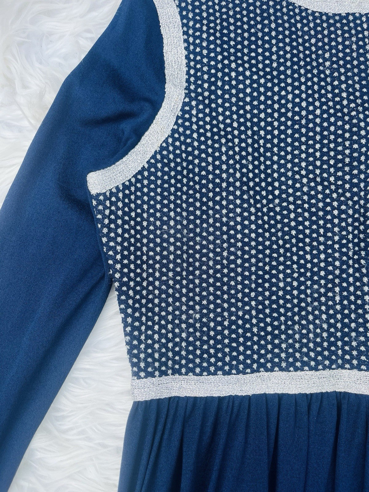 vintage 1960s maxi dress floaty retro long sleeve high neck blue size 12