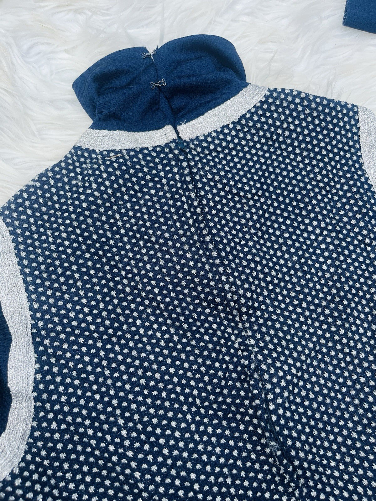 Step back in time with this authentic 1960s maxi dress, a true vintage gem that epitomises the elegance of the era. Rendered in a serene shade of blue, this garment features a high-neckline and long sleeves, perfect for a range of occasions, from garden parties to evening soirees. Its floaty silhouette ensures a graceful movement, making it a delightful choice for those who appreciate the charm of retro fashion.