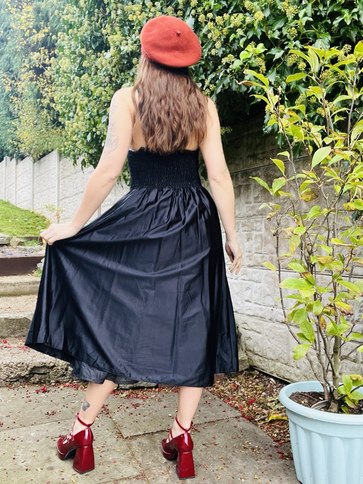 Vintage 1980s Party Dress Black Size 16 Midi Length Strappy Retro Dress