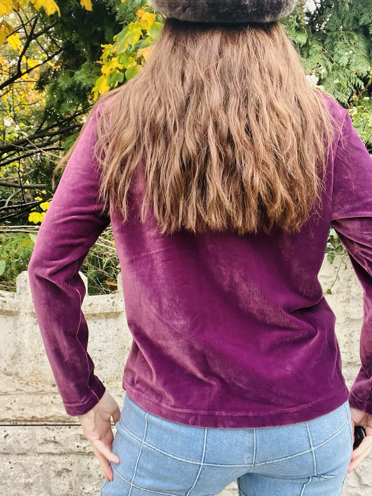This vintage 1980s Berkertex velvet top in size 18 is a stylish addition to any woman's wardrobe. The deep purple colour and ribbed turtle neck give it a classic and elegant look, perfect for special occasions or everyday wear. Made from luxurious velvet, this original piece exudes a timeless charm that is sure to turn heads. Ideal for those who appreciate vintage fashion with a modern twist, this Berkertex jumper is a versatile and eye-catching choice for any fashion-forward individual.