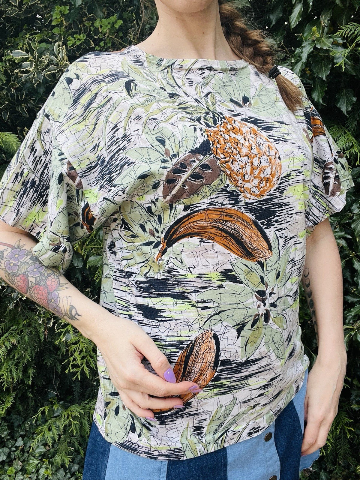Vintage 1990s Summer T-shirt Single Stitch With Abstract Pineapple Design 14-16