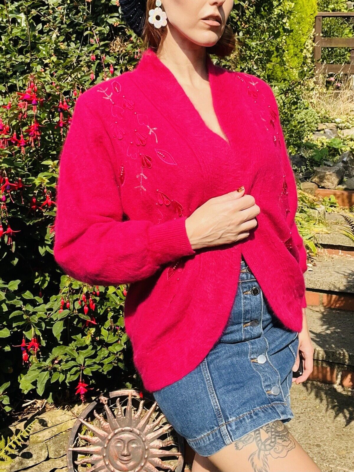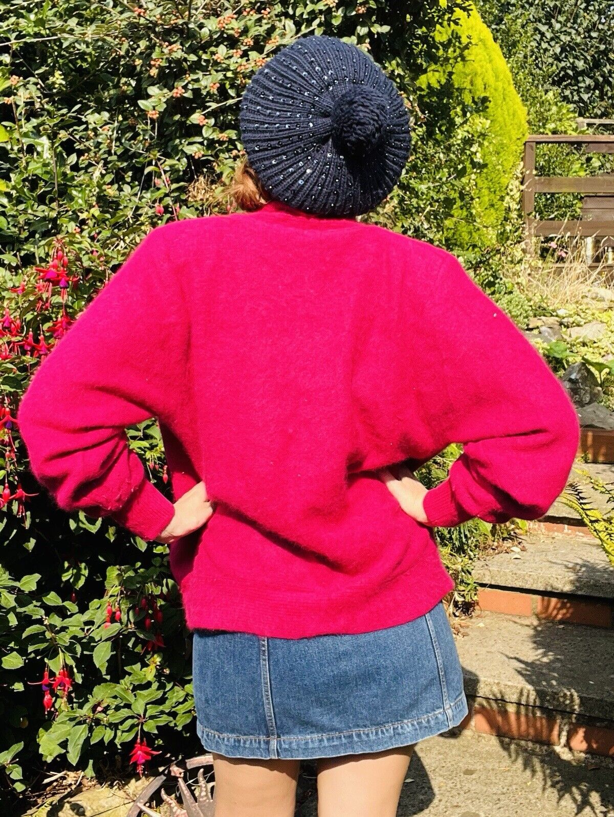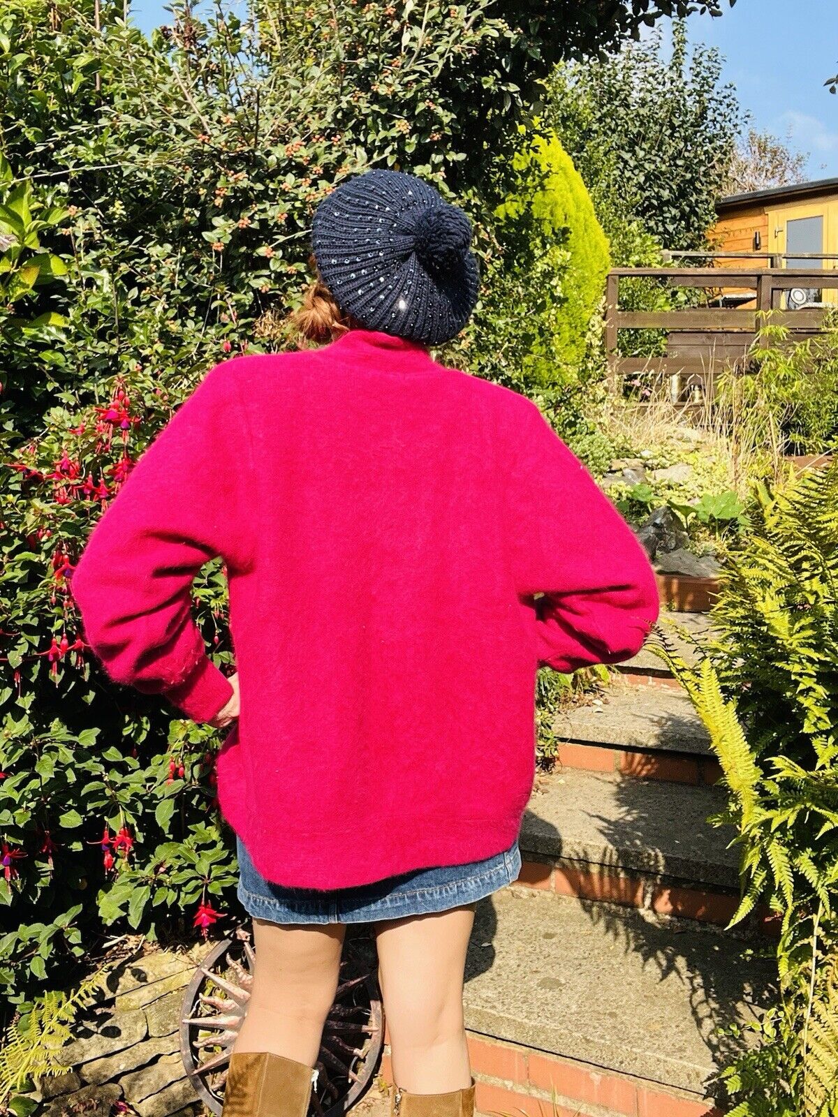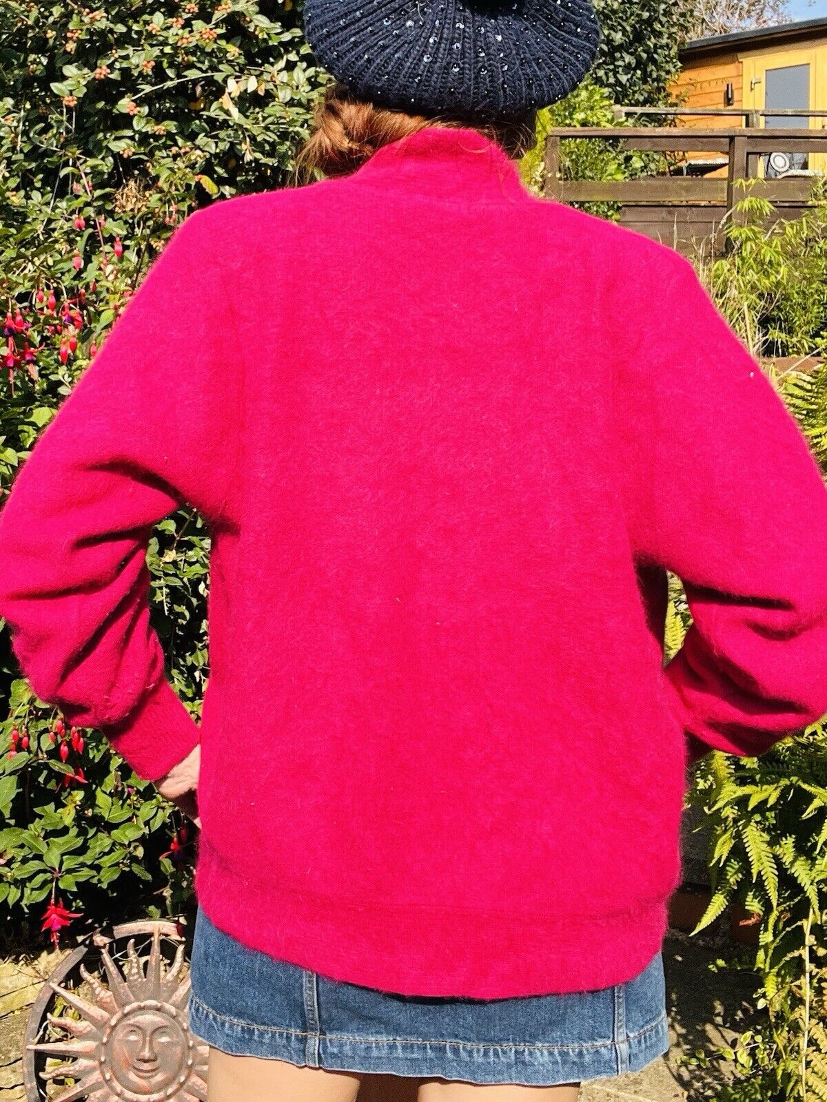 Vintage 80s Retro Cardigan Fluffy Woolly Knit 1980s Warm Winter Jumper Size M