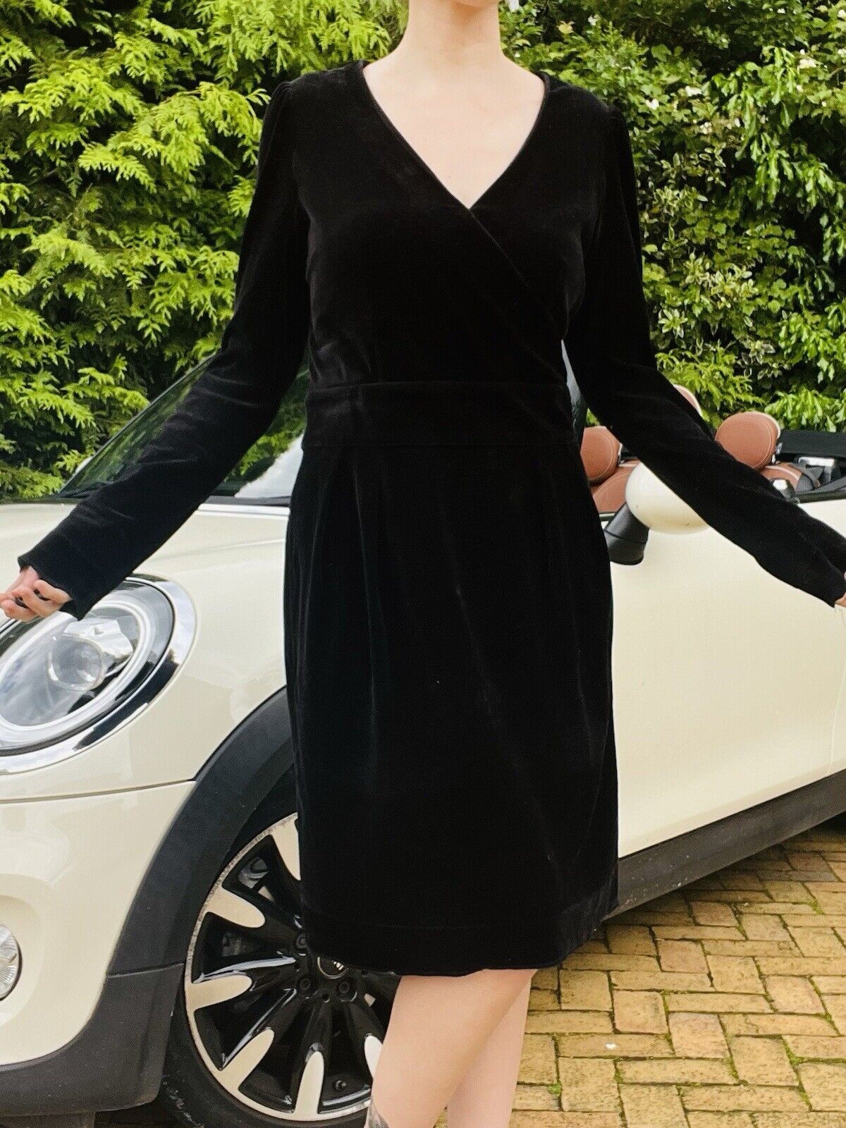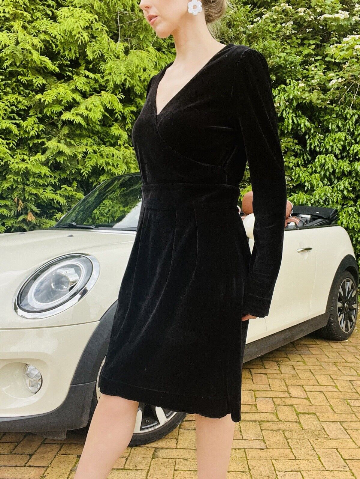 This vintage black velvet dress from the 1980s is a stunning addition to any wardrobe. The knee-length dress features long sleeves and is sized at 10-12. The brand is not specified, but the quality and style of the dress are sure to impress.
