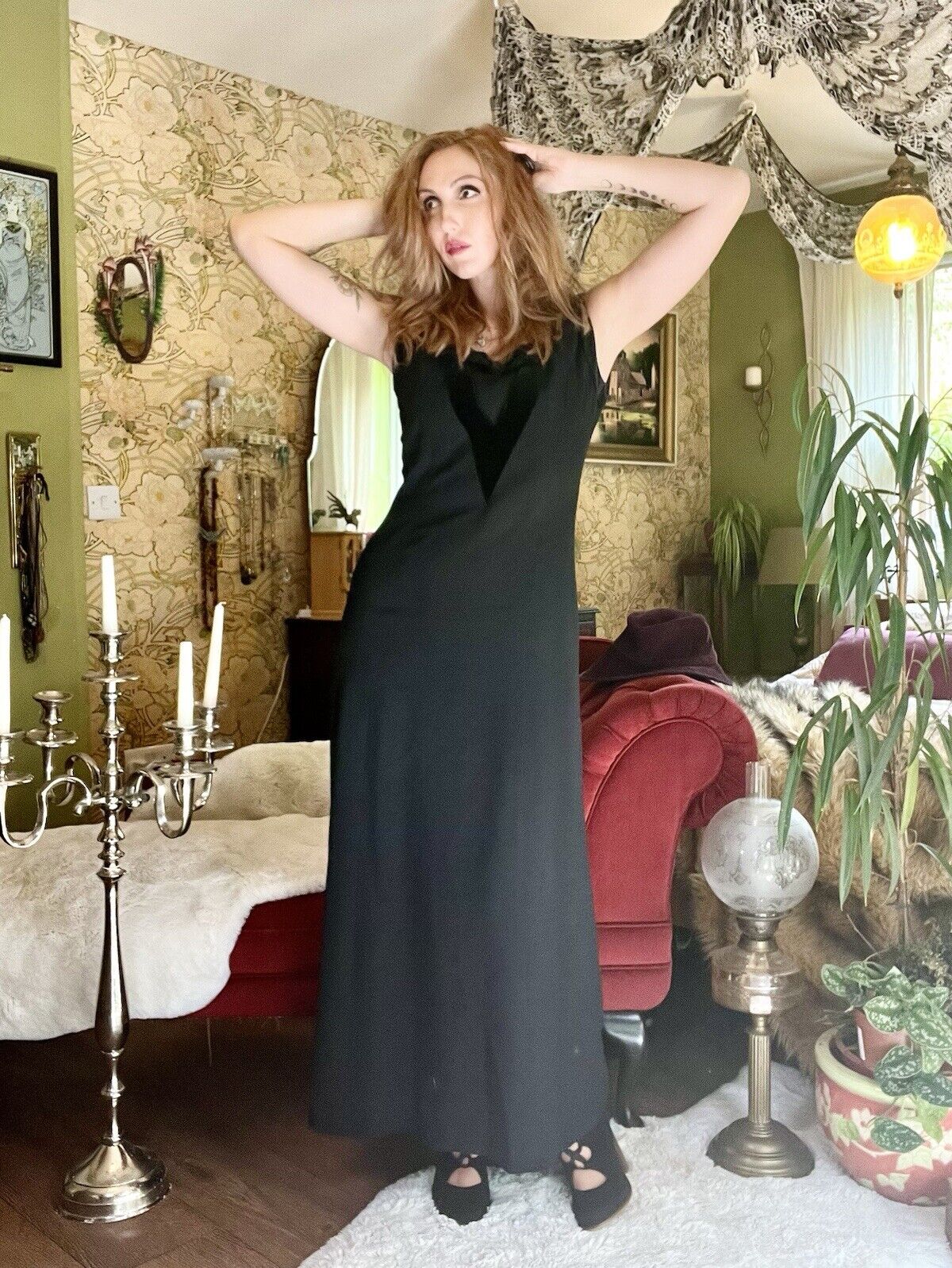 Vintage 90s Maxi Dress Whimsigoth Long Black Dress With Velvet Bow Size 14