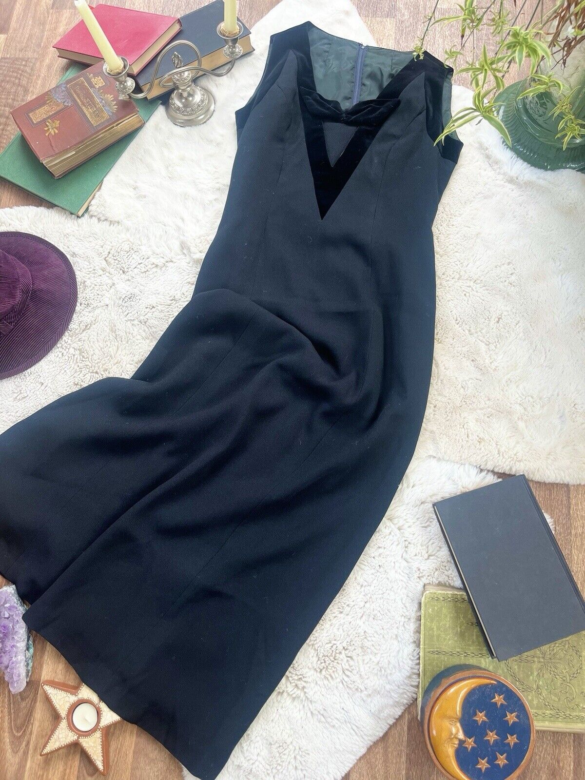 Embrace the 90s vintage style with this stunning black maxi dress from Whimsigoth. The dress features a luxurious velvet trim and comes with a little velvet bow, adding a touch of glamour to the overall look. The size 14 dress is perfect for any occasion and is sure to turn heads with its unique and timeless design.