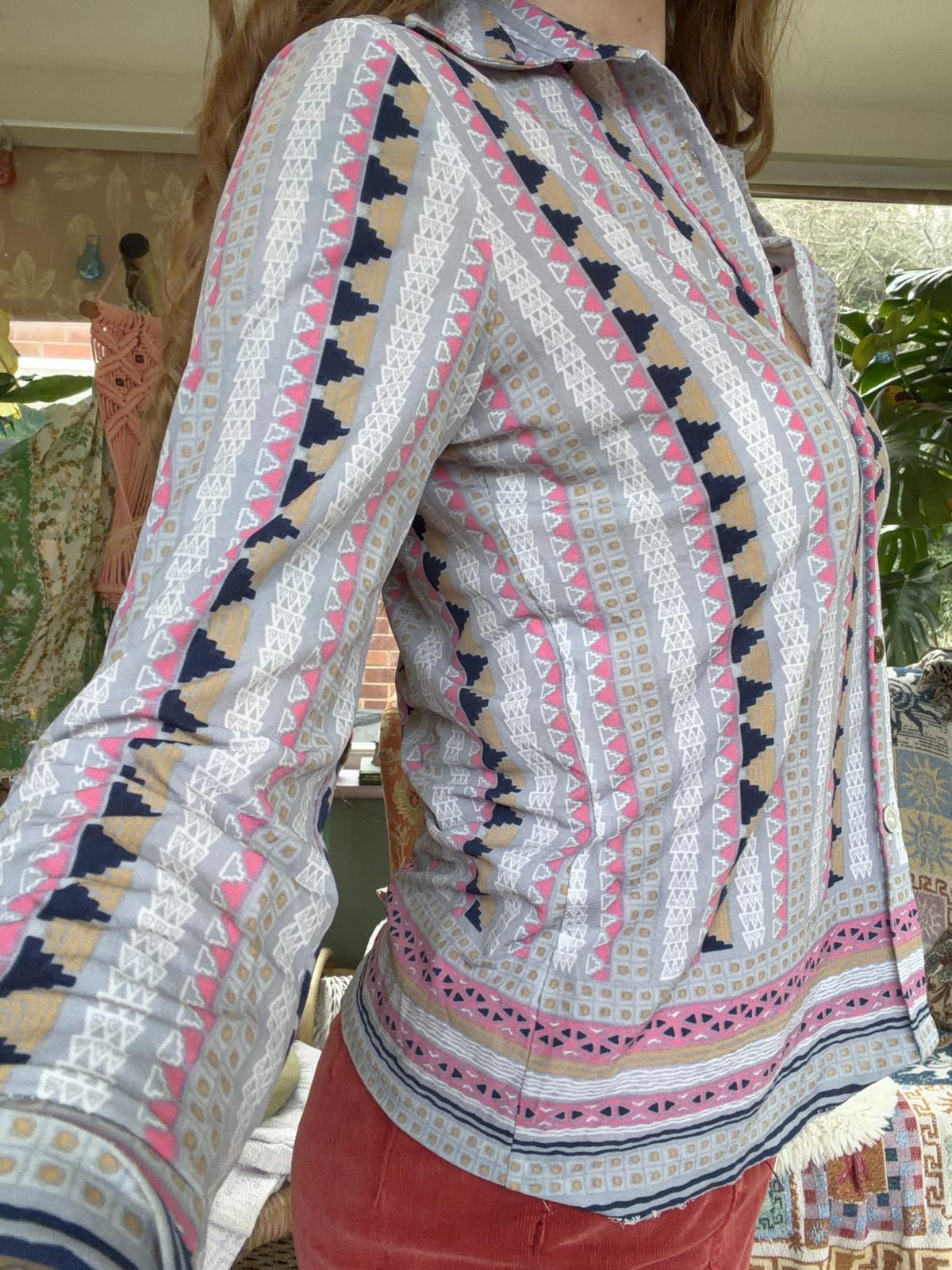 Vintage Blouse Bold Retro Print Collared Shirt Casual Or Formal Office Workwear