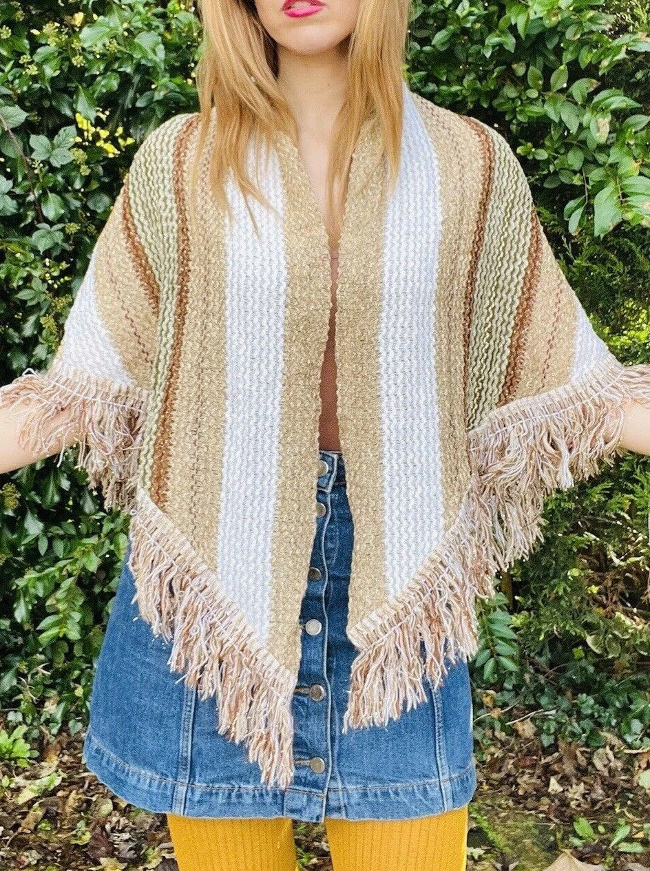 Vintage Boho Crochet Shawl Hippie Triangle Knit Wrap Cape Cottage Whimsy Scarf