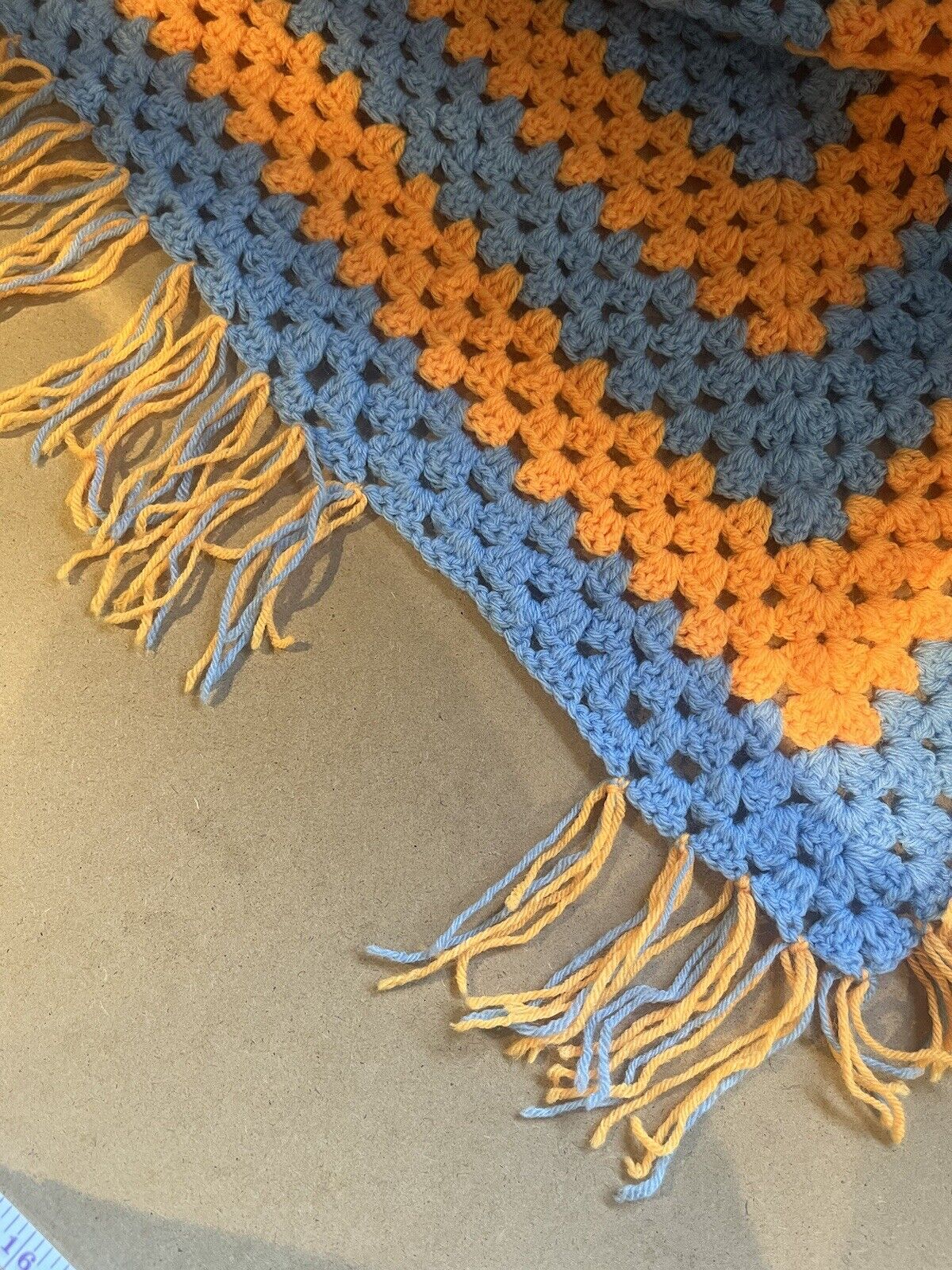 Vintage Boho Crochet Shawl Hippie Triangle Knit Wrap Cape Cottage Whimsy Scarf