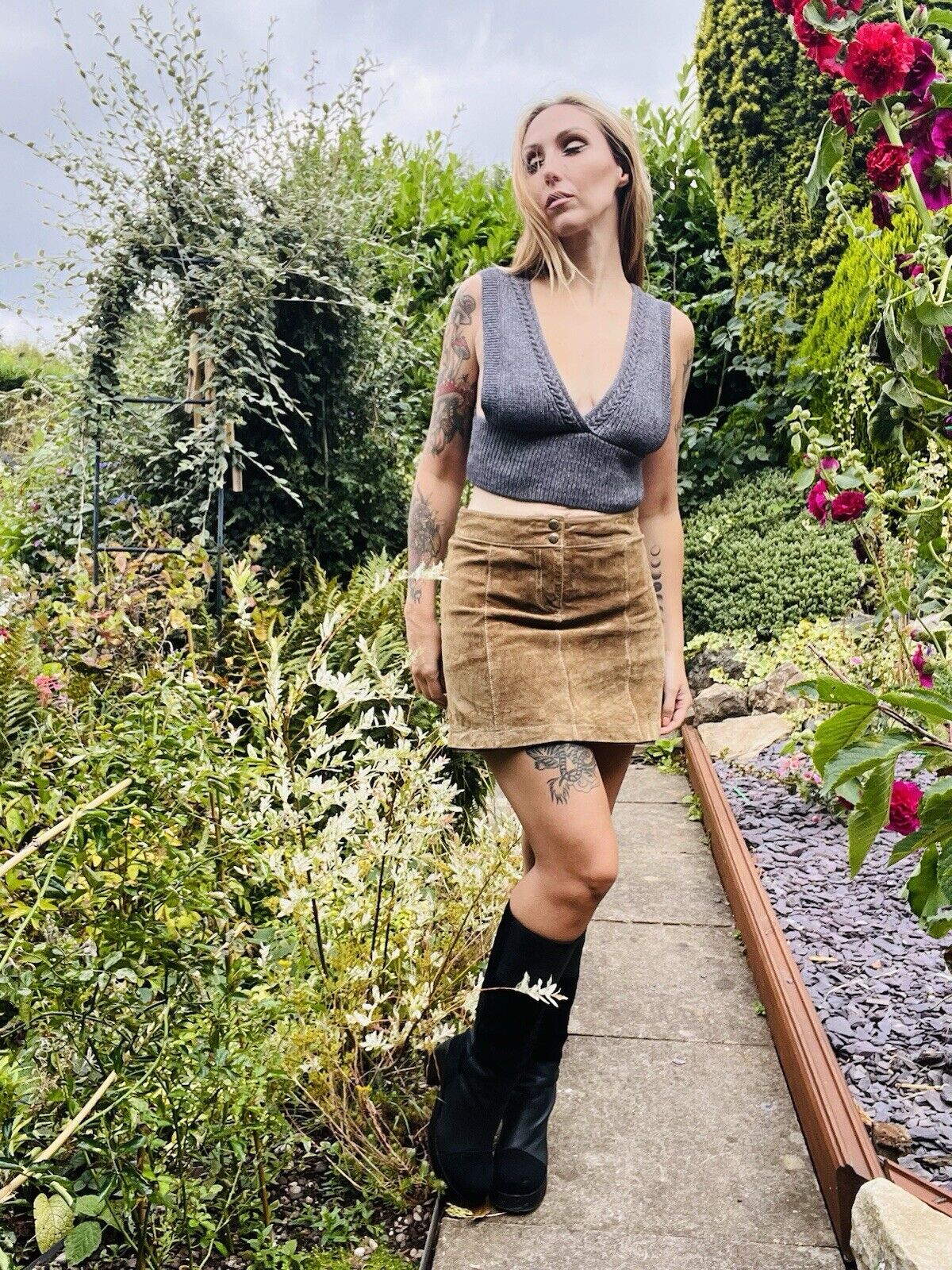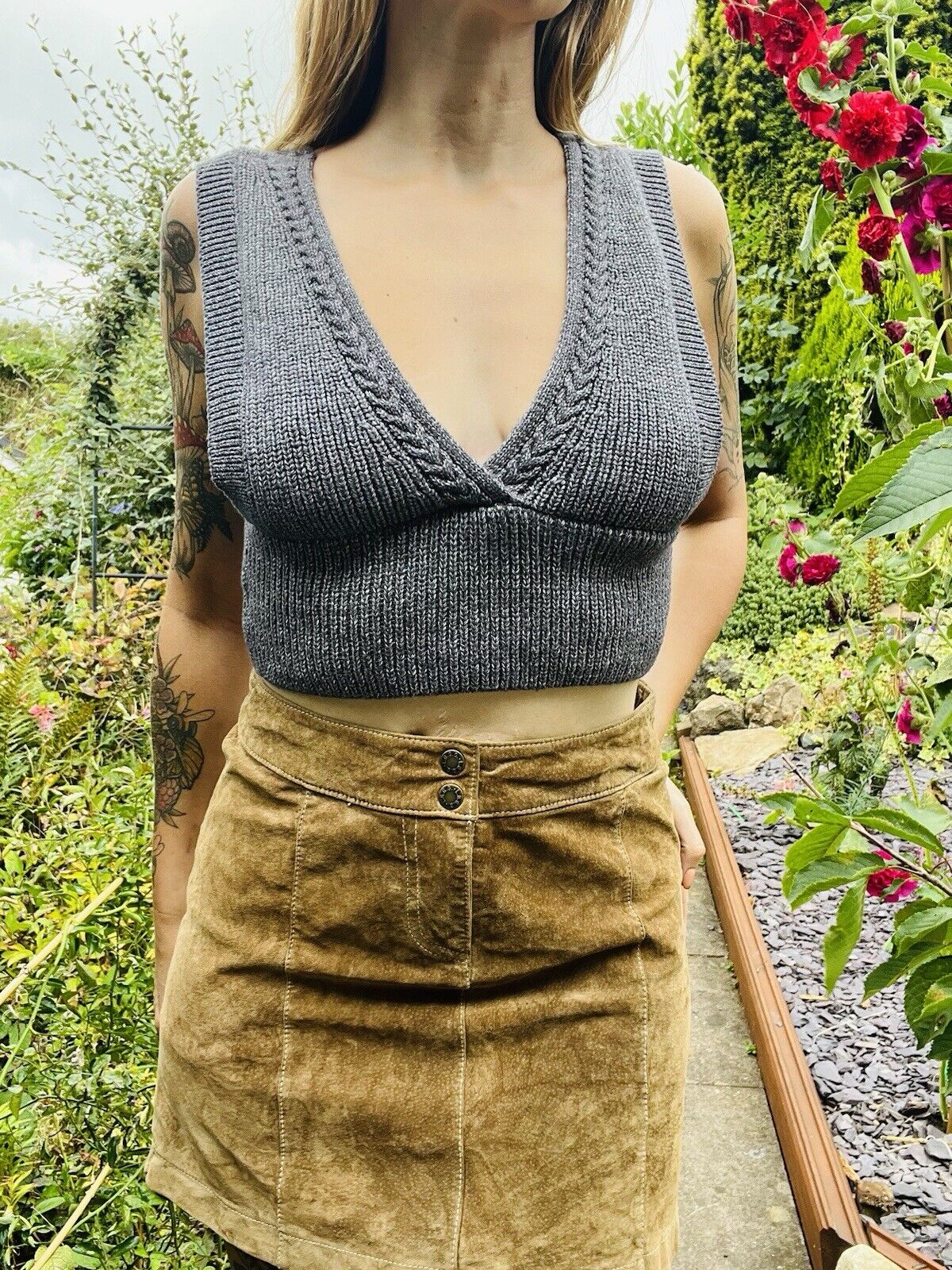 This Vintage Y2k Knit Crop Top is a must-have for any fashion-forward woman. With a plunge neckline and tie waist, this sleeveless sweater vest is perfect for warm and cool weather. The grey colour adds a pop of retro charm, while the knit top style is both comfortable and stylish.