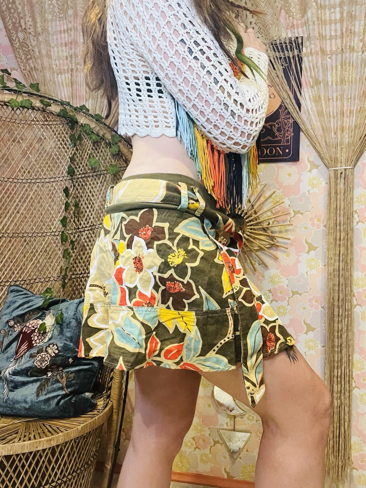 Vintage Y2K Mini Skirt Hawaiian Print Summer Festival Holiday Short Skirt 10