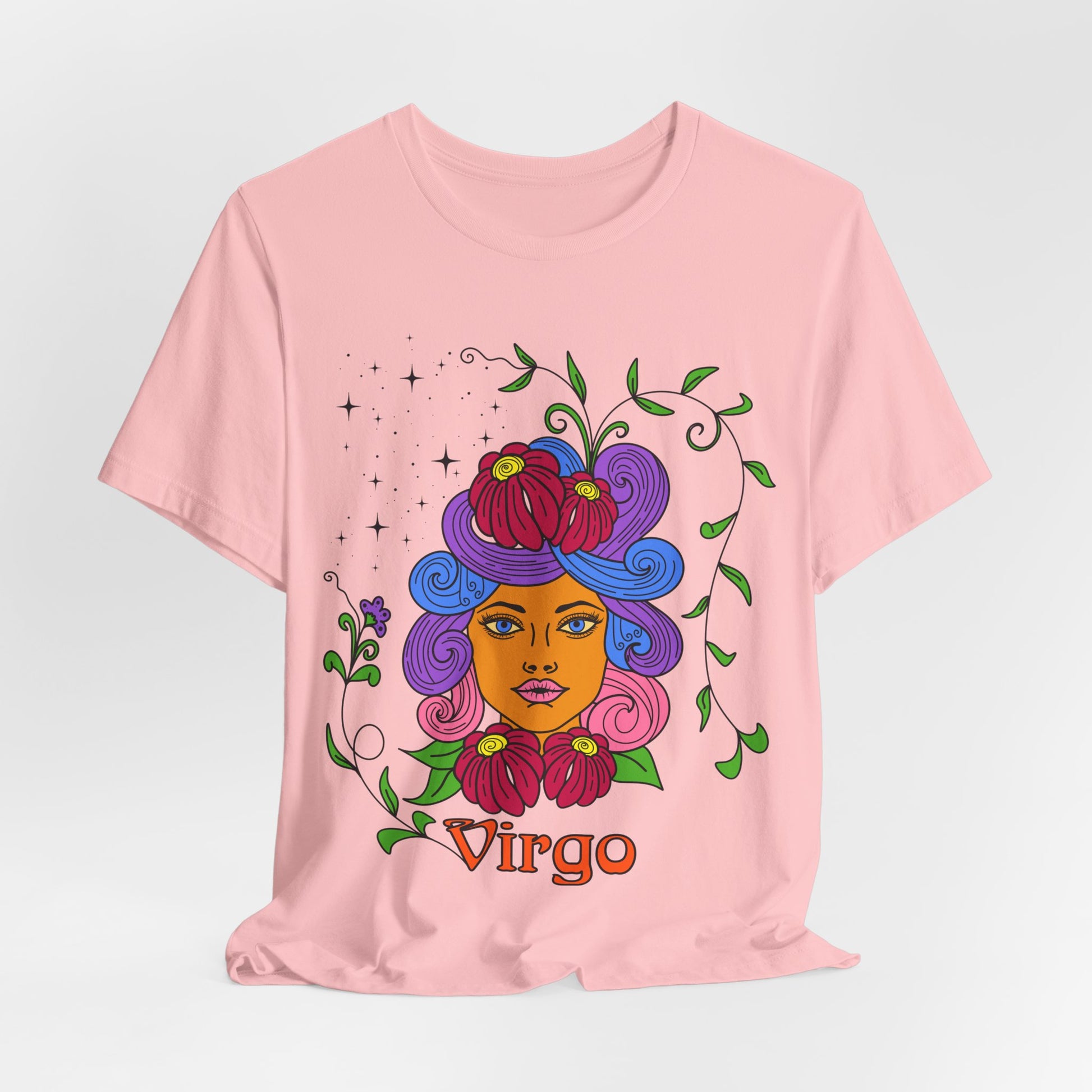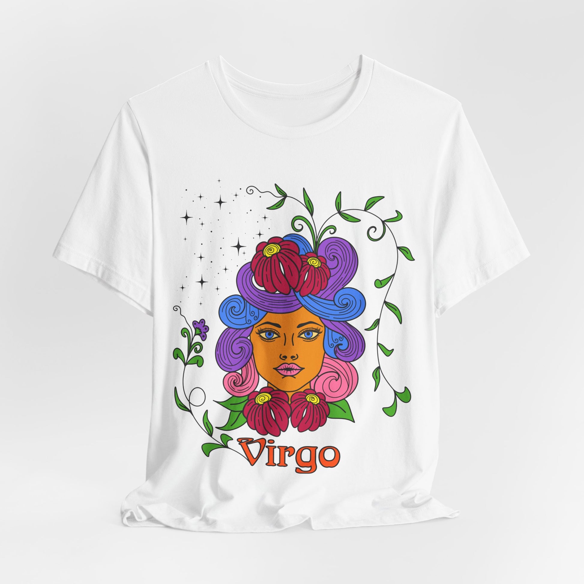 Introducing a vibrant and artistic unisex lightweight short sleeve T-shirt that embodies creativity and individuality. This shirt features an eye-catching design inspired by the Virgo zodiac, adorned with colourful maiden and floral elements that bring a touch of whimsy and personality to your wardrobe. Perfect for casual outings or relaxed gatherings, this tee offers versatility, making it suitable for layering or wearing on its own. Ideal for astrology enthusiasts and those who love unique fashion statements, this shirt embraces self-expression and joy. Celebrate birthdays, zodiac-themed events, or simply add a splash of color to your everyday look with this lively piece! Product features - Made with 100% Airlume combed and ring-spun cotton for breathability and comfort - Ribbed knit collar retains its shape and adds a classic touch - Side seams provide structural support for a lasting fit - Vibrant printing techniques ensure detailed designs and smooth finishes - Tear-away label minimizes skin irritations, enhancing comfort firsthand. Care instructions - Machine wash: cold (max 30C or 90F) - Non-chlorine: bleach as needed - Tumble dry: low heat - Iron, steam or dry: medium heat - Do not dryclean