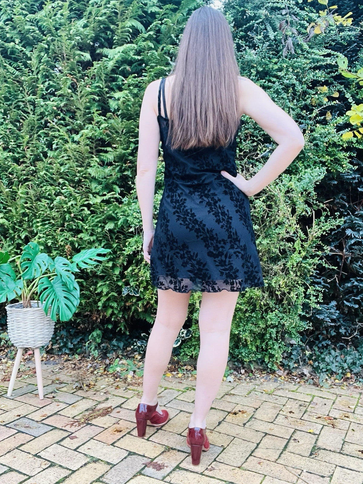 Y2K strappy mini dress Black Size 12 Whimsigoth Ditsy Floral Velvet Detail